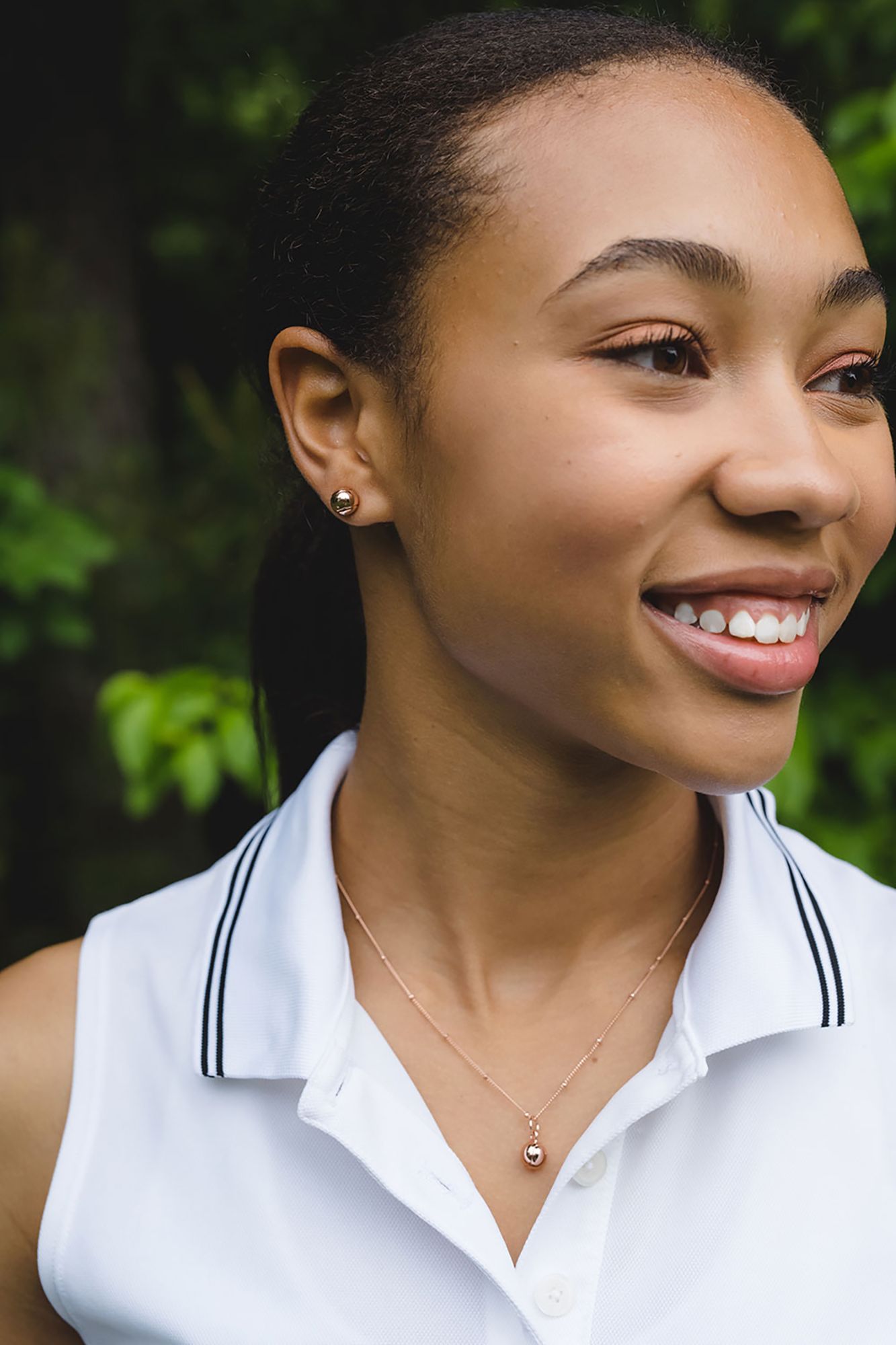The perfect, elegant gift set for the stylish tennis player; wear this jewelry on and off the court as a reminder of your love for the game. 18k rose gold-filled 18" chain featuring an 18k rose gold plated 8mm tennis ball charm. Earrings are 18k rose gold plated 8mm tennis ball studs; hypoallergenic with sterling silver posts and backings.