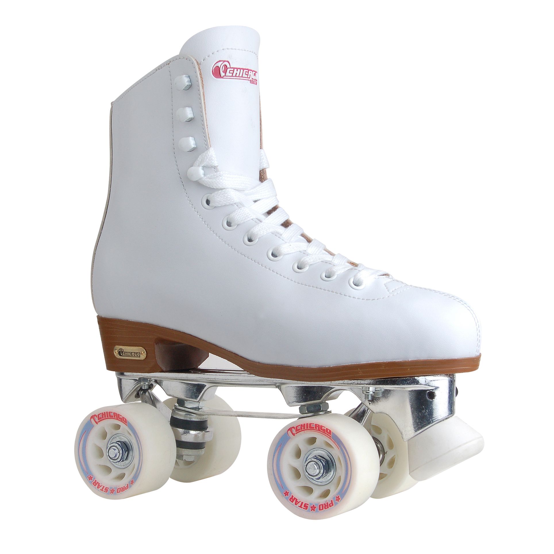 Quality updates were added to an old classic in the Chicago ® Women's Deluxe Rink Roller Skates. The leather-lined rink pattern high top boots with double adjustable aluminum trucks and chassis offer durability and support when you’re cruising around the rink. Smooth high rebound 60mm urethane spoke wheels with ABEC bearings, jump bars, and 5/8” adjustable toe stops add extra speed and precision to your skating.
