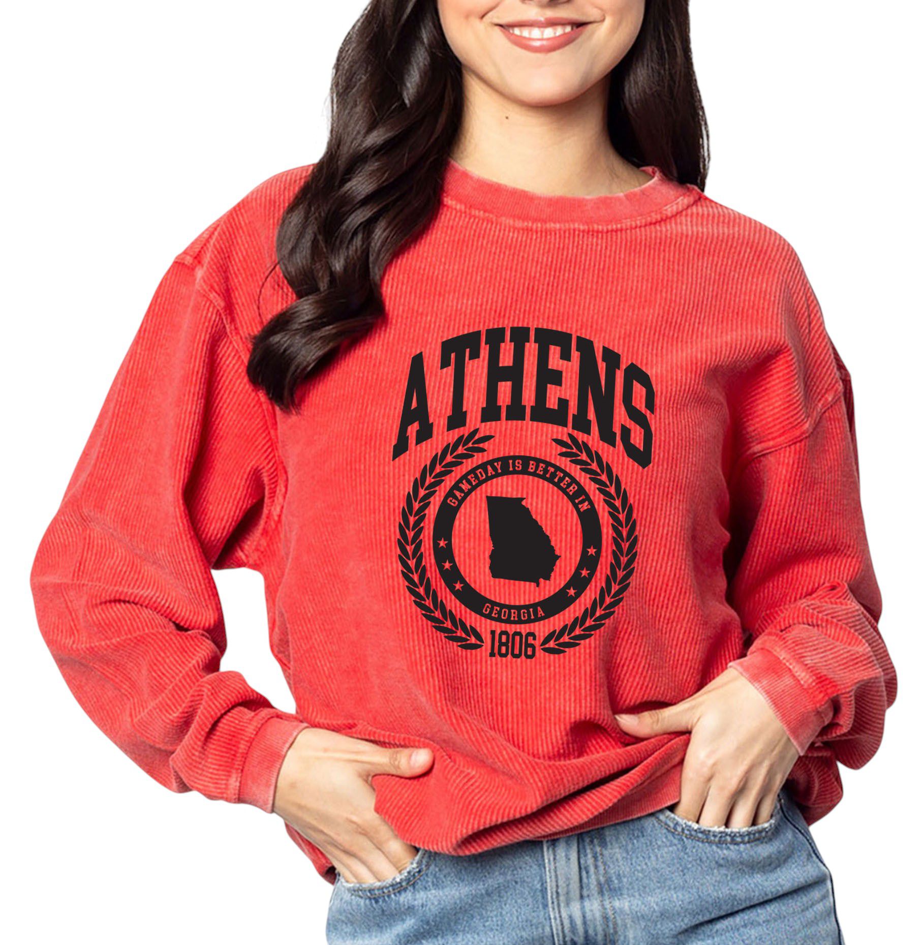 chicka-d Women's Athens Red College Graphic Crew Pullover Sweatshirt