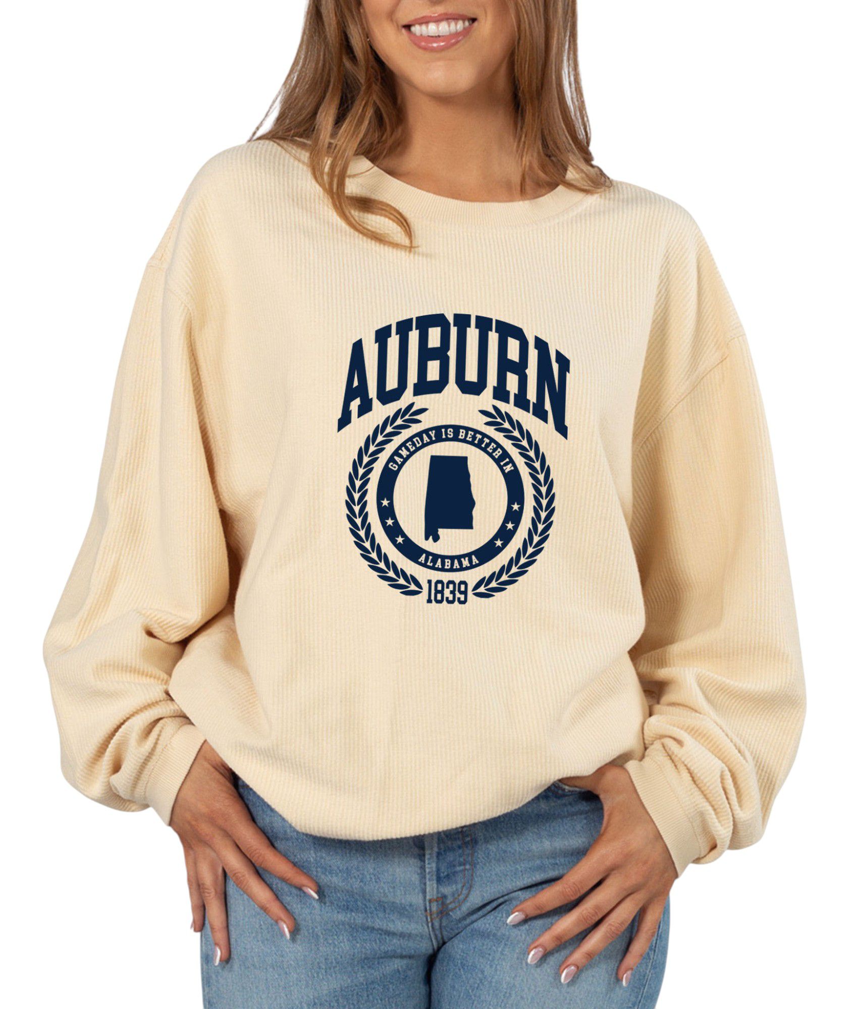 chicka-d Women's Auburn Tan College Graphic Crew Pullover Sweatshirt