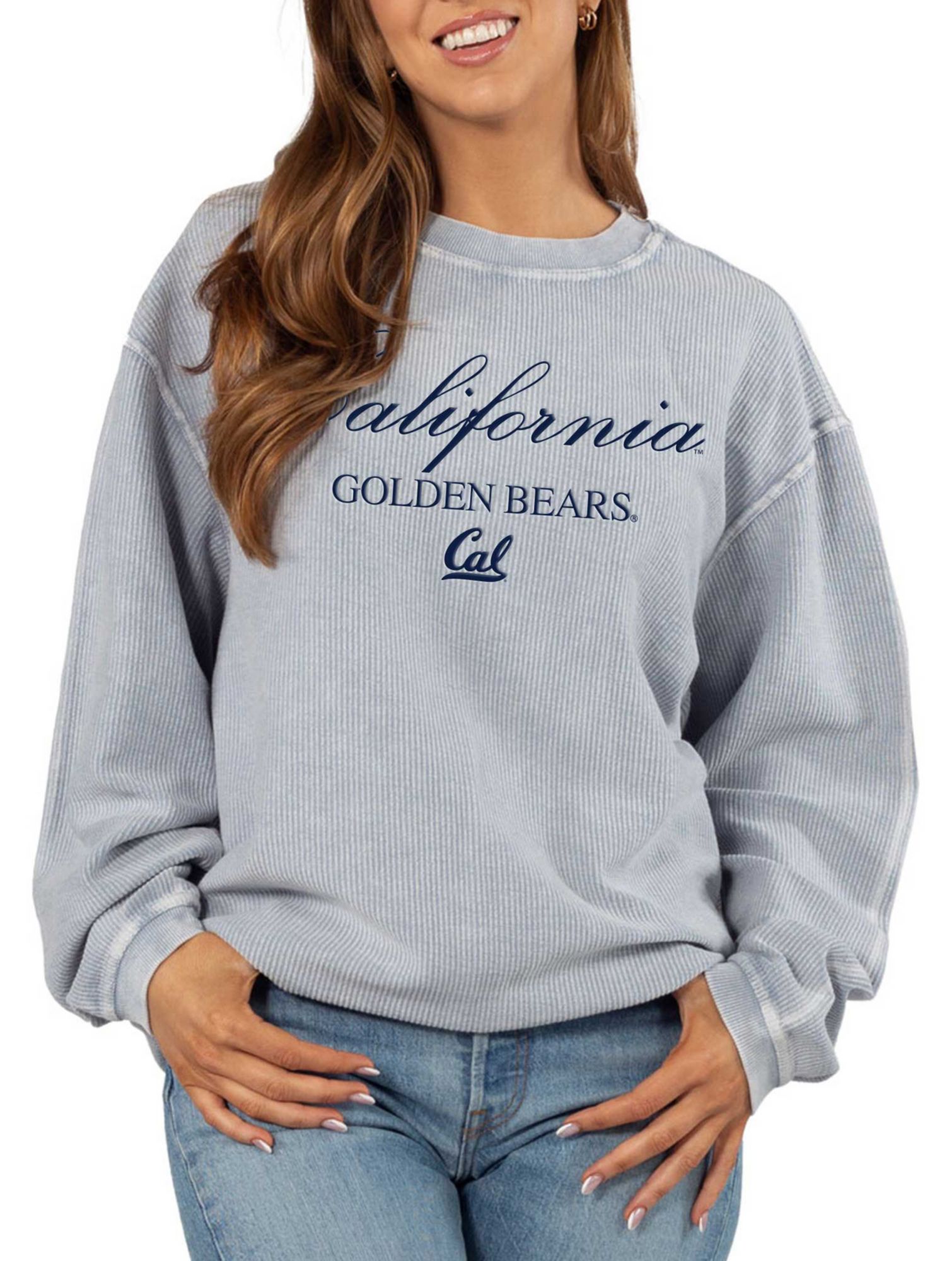 chicka-d Women's Cal Golden Bears Light Blue Resort Corded Crewneck Sweatshirt