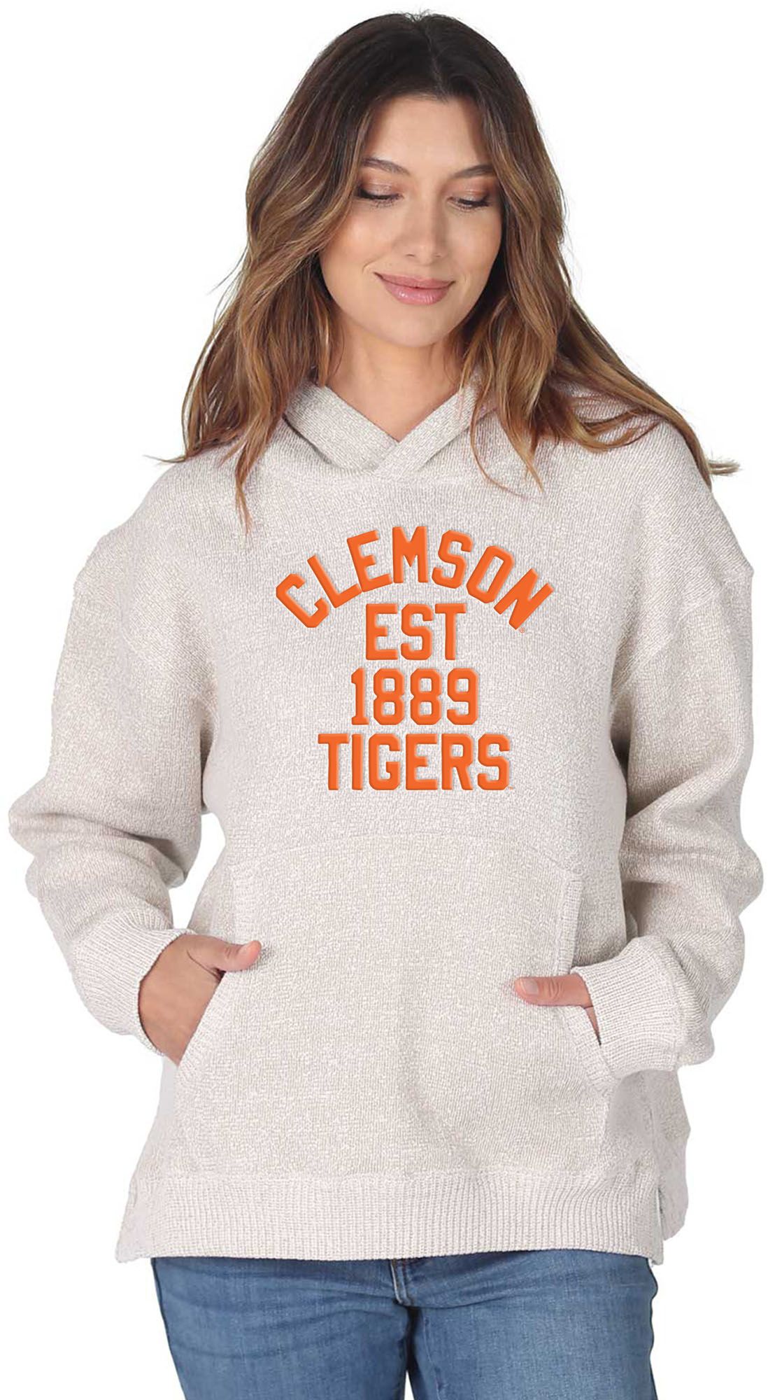 chicka-d Women's Clemson Tigers Natural Spirit Fleece Weekender Pullover Hoodie