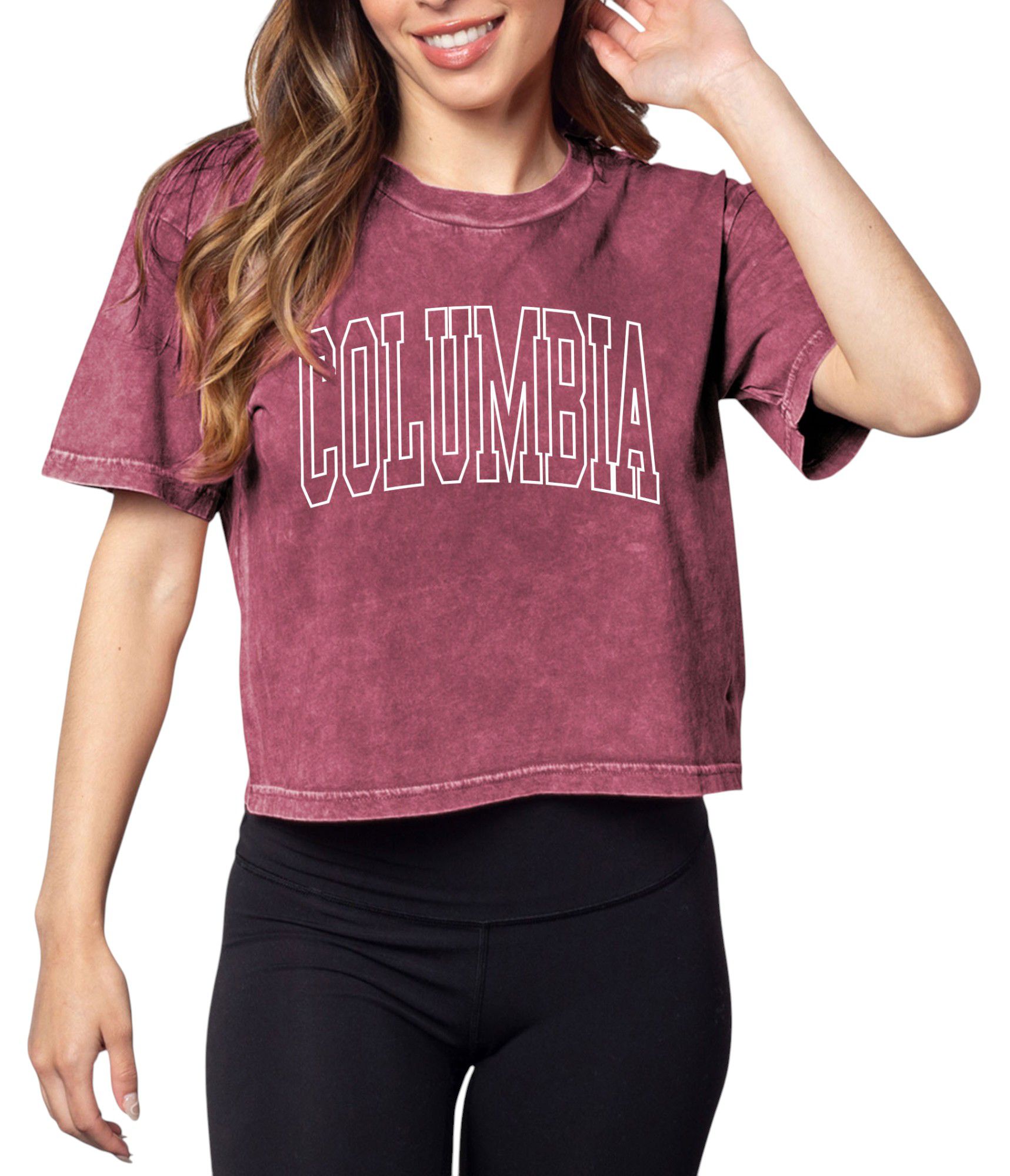chicka-d Women's College Station Maroon College Arch Crop T-Shirt