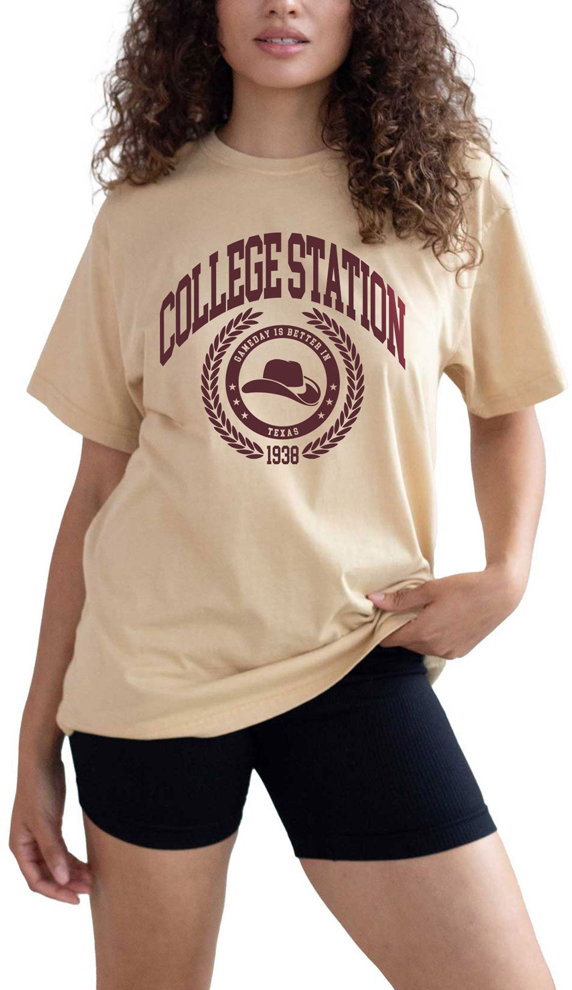 chicka-d Women's College Station Tan College Old School T-Shirt