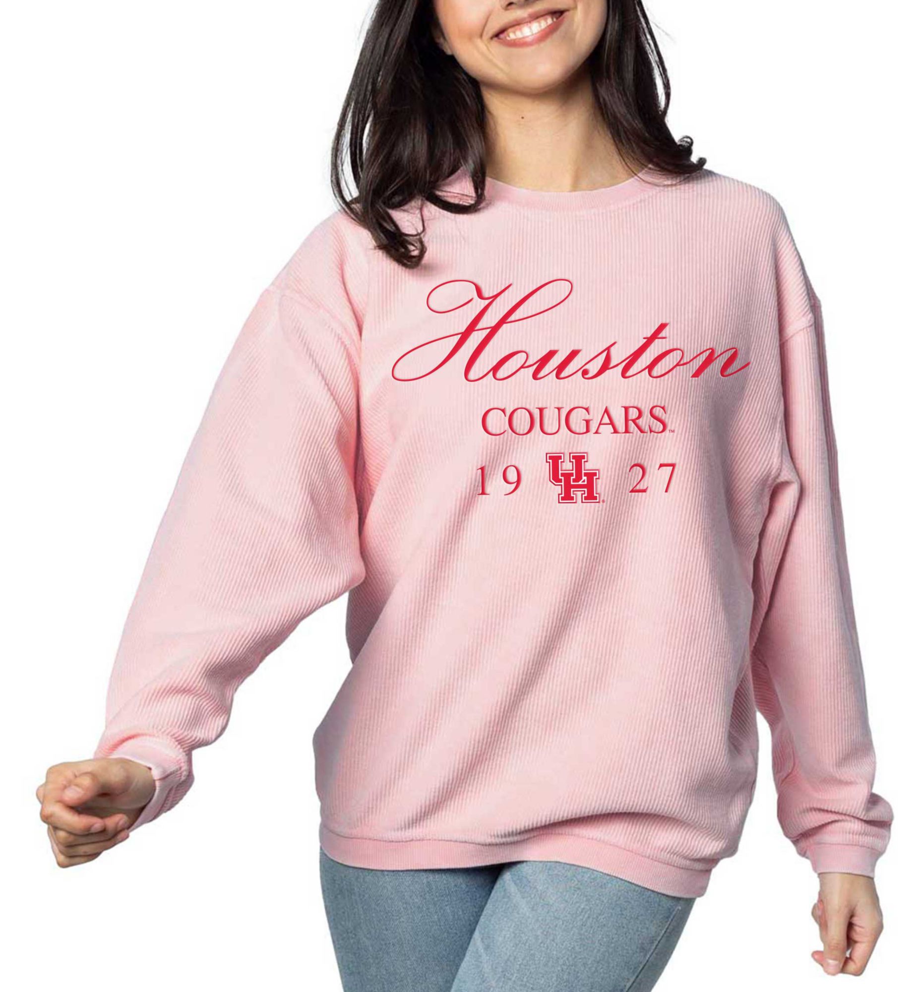 chicka-d Women's Houston Cougars Pink Resort Corded Crewneck Sweatshirt