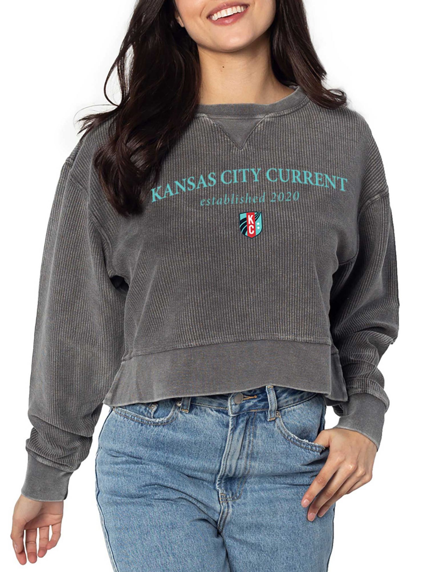 chicka-d Women's Kansas City Current Arc Grey Corded Crewneck Sweatshirt