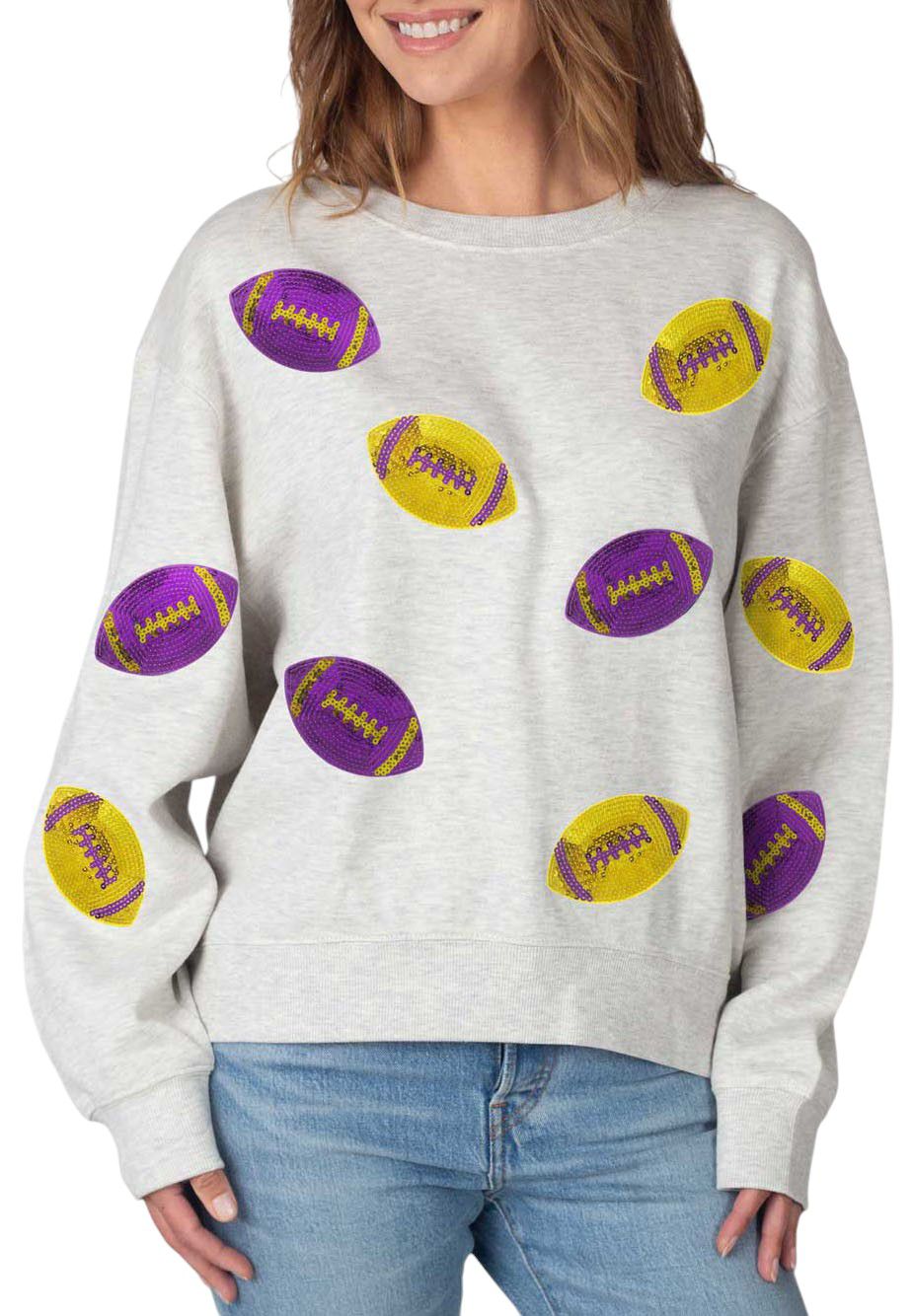 chicka-d Women's LSU Tigers Ash Grey Sequin Football Crew Pullover Sweatshirt