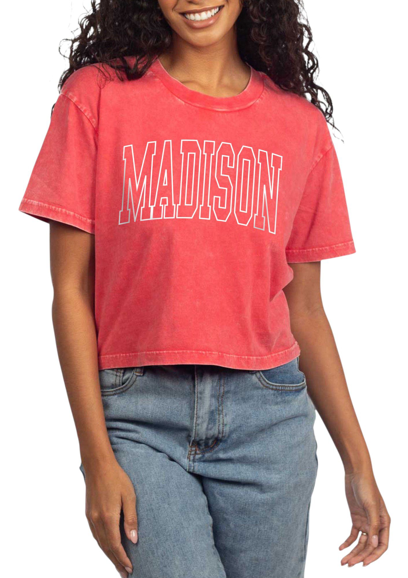 chicka-d Women's Madison Red College Arch Crop T-Shirt