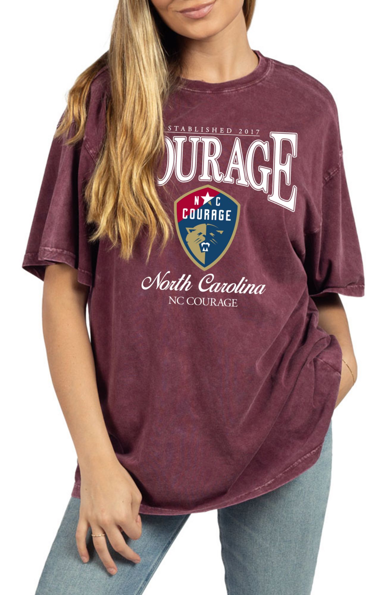 chicka-d Women's North Carolina Courage Graphic Band Maroon T-Shirt