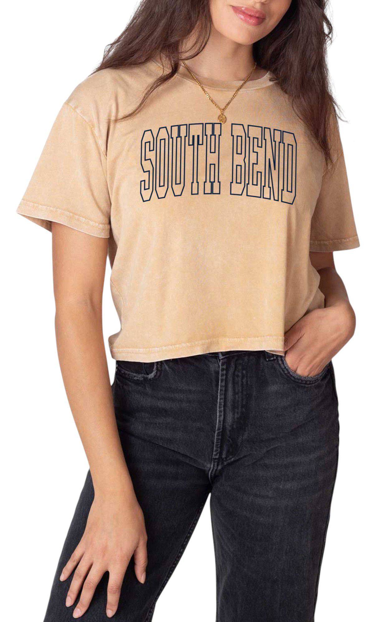 chicka-d Women's South Bend Tan College Arch Crop T-Shirt