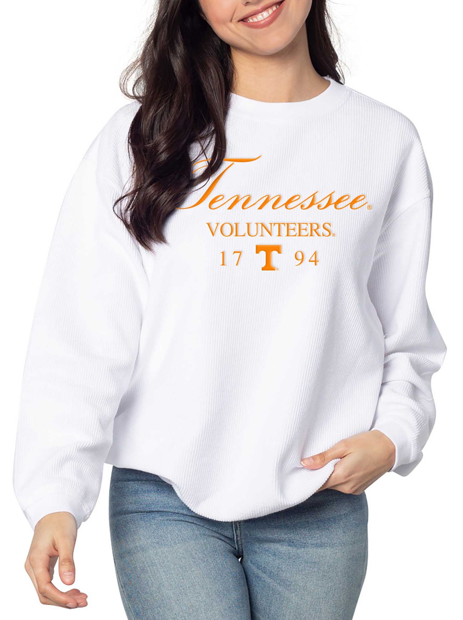 chicka-d Women's Tennessee Volunteers White Resort Corded Crewneck Sweatshirt