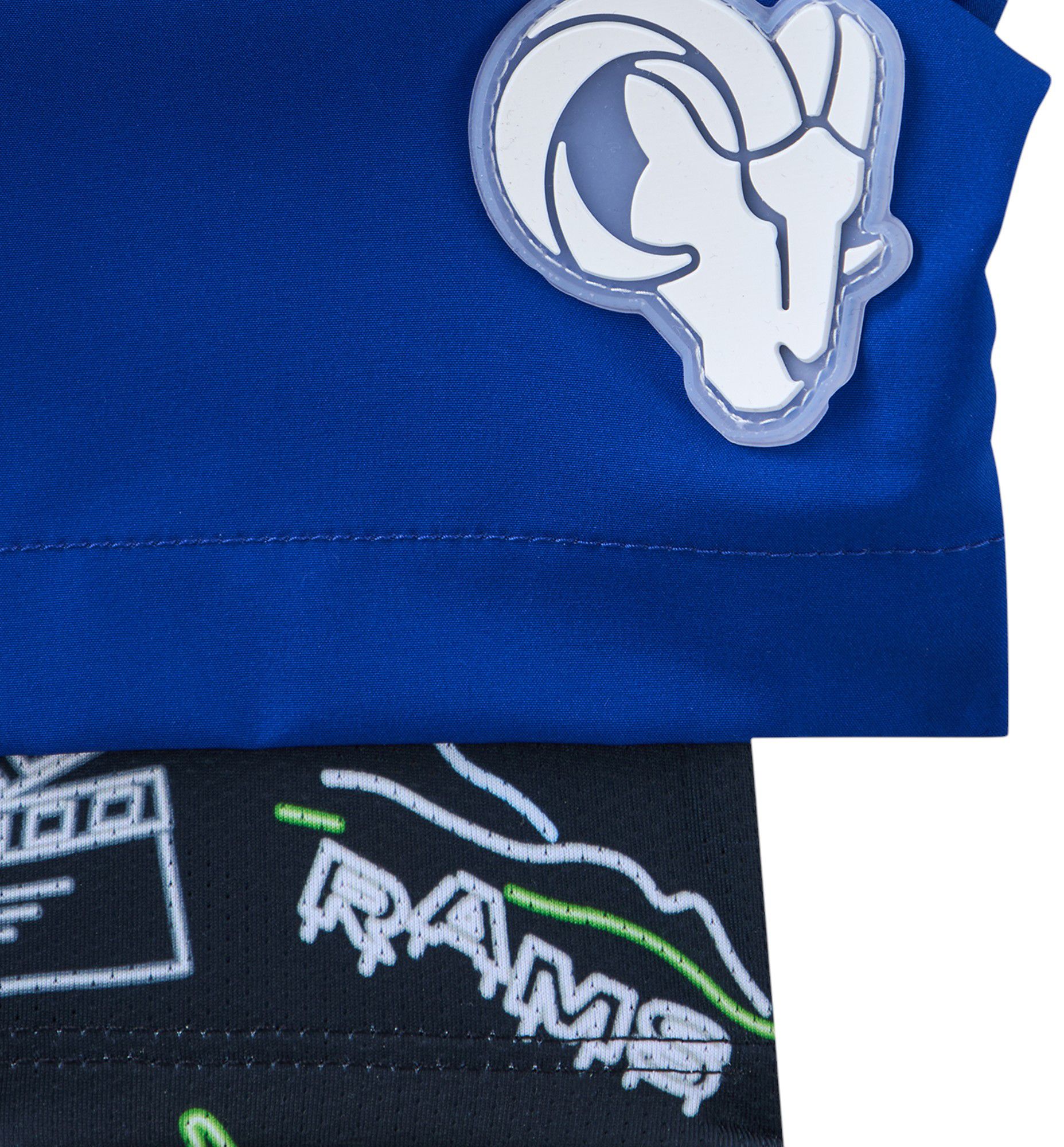 Team graphics prominently displayed on legs