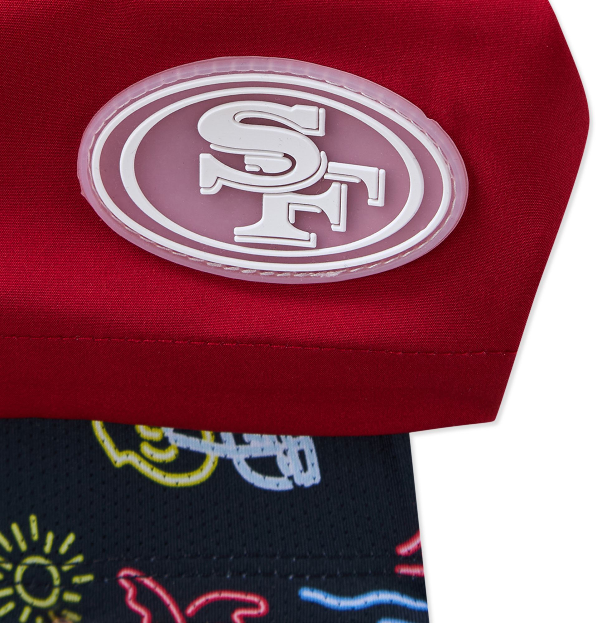 Team graphics prominently displayed on legs