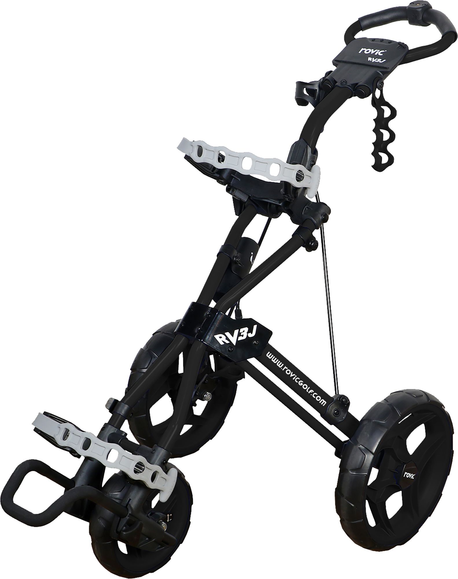 They'll be navigating like a professional with the Clicgear Junior Rovic RV3J Cart. Lightweight tubing promotes smooth rolling on course surfaces, and the foot brake is easy to use and control. The clip strap makes securing a golf bag quick and convenient, and additional features, including an umbrella holder and a ball storage clip, complete this versatile package fit for your future star.