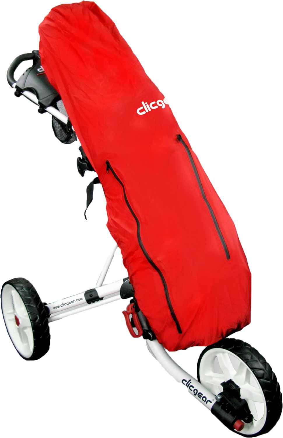 Keep your golf bag protected when the rain hits the links with the Clicgear® Rain Cover. This waterproof cover securely fits your bag and Clicgear® or other branded push carts with the quick clips. The top and side pockets allow you to easily get into you bag when needed, and the water-resistant zippers make it easy to open and close in harsh weather. The lightweight, durable nylon material keeps your clubs ready for use.