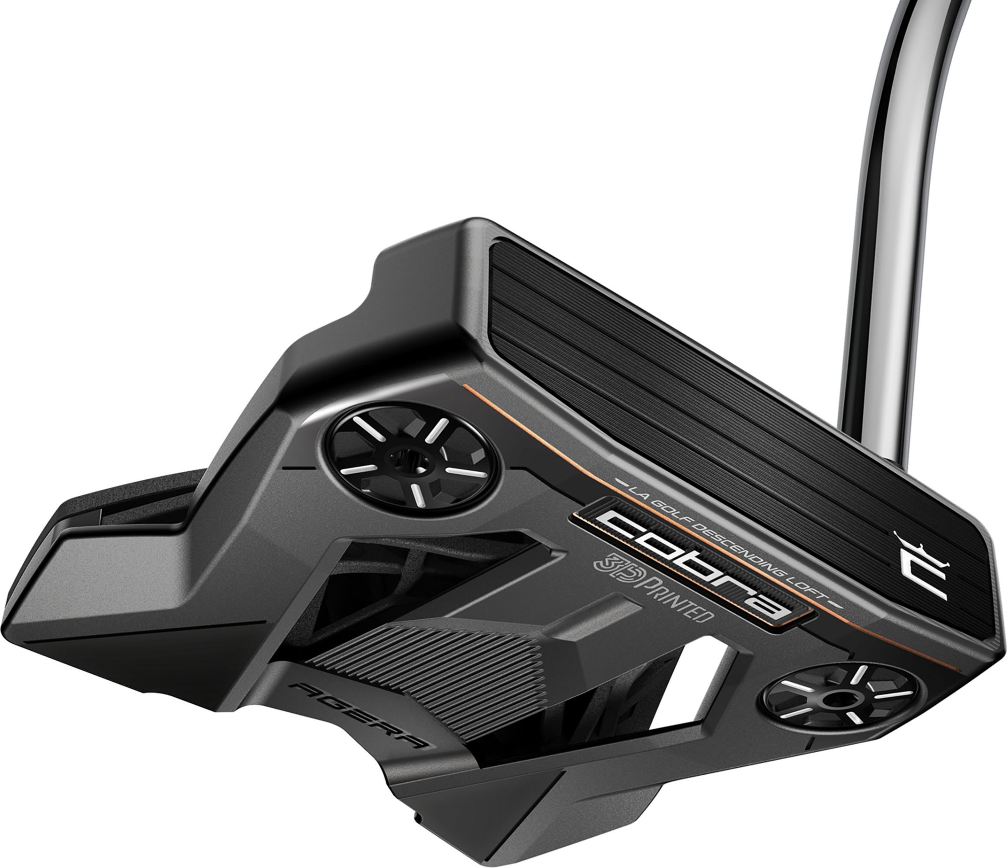 The Cobra Agera Armlock putter is a multi-material 3D printed construction that brings ultimate stability in a flagship oversized mallet design. Featuring a plumbers neck hosel, designed for players with a moderate arc stroke type and seeking a longer armlock shaft setup. Paired with LA GOLF’s Descending Loft Face Technology that delivers consistent launch and consistent end-over-end roll performance.
