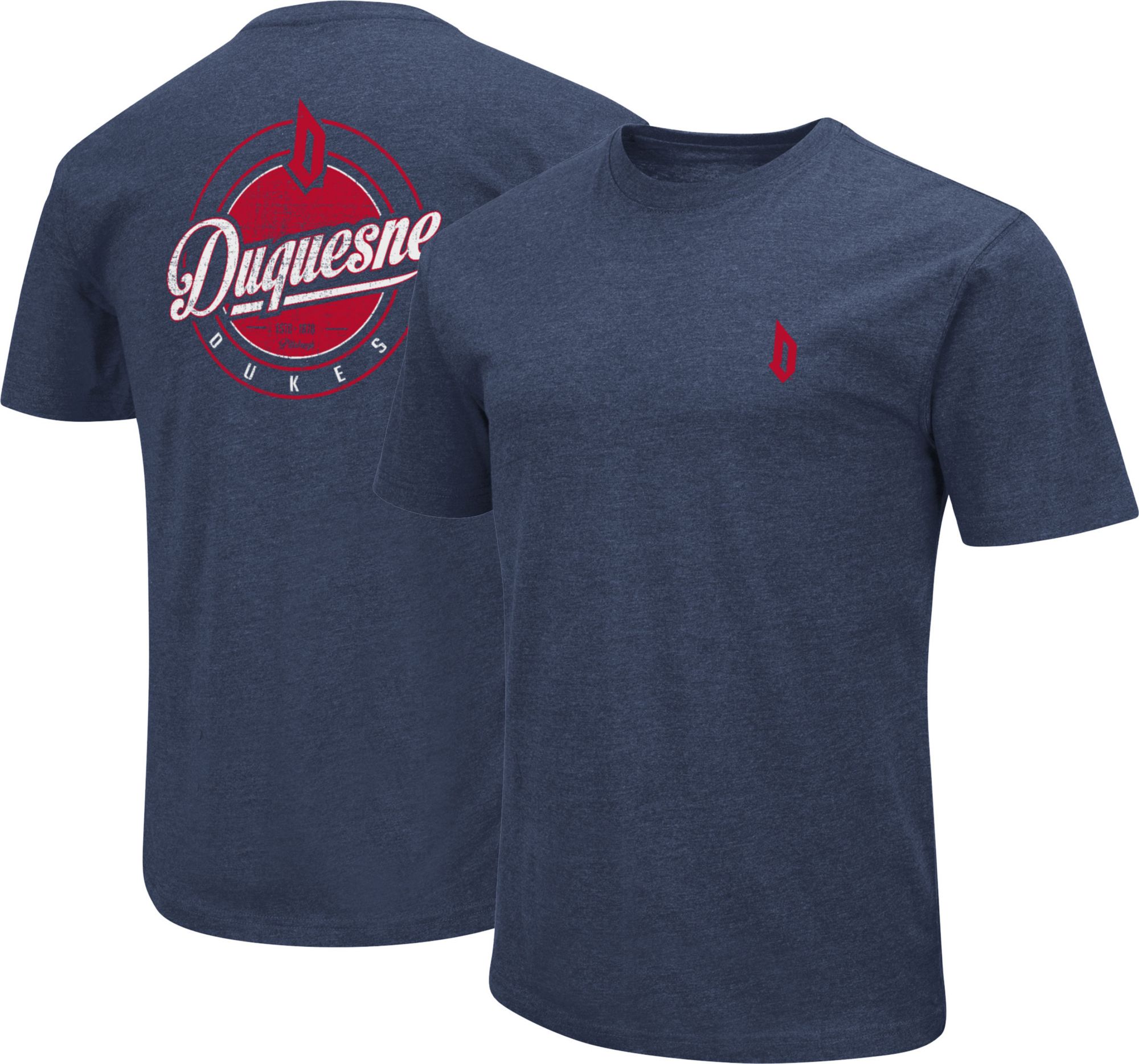 Colosseum Men's Duquesne Dukes Navy Back Hit T-Shirt