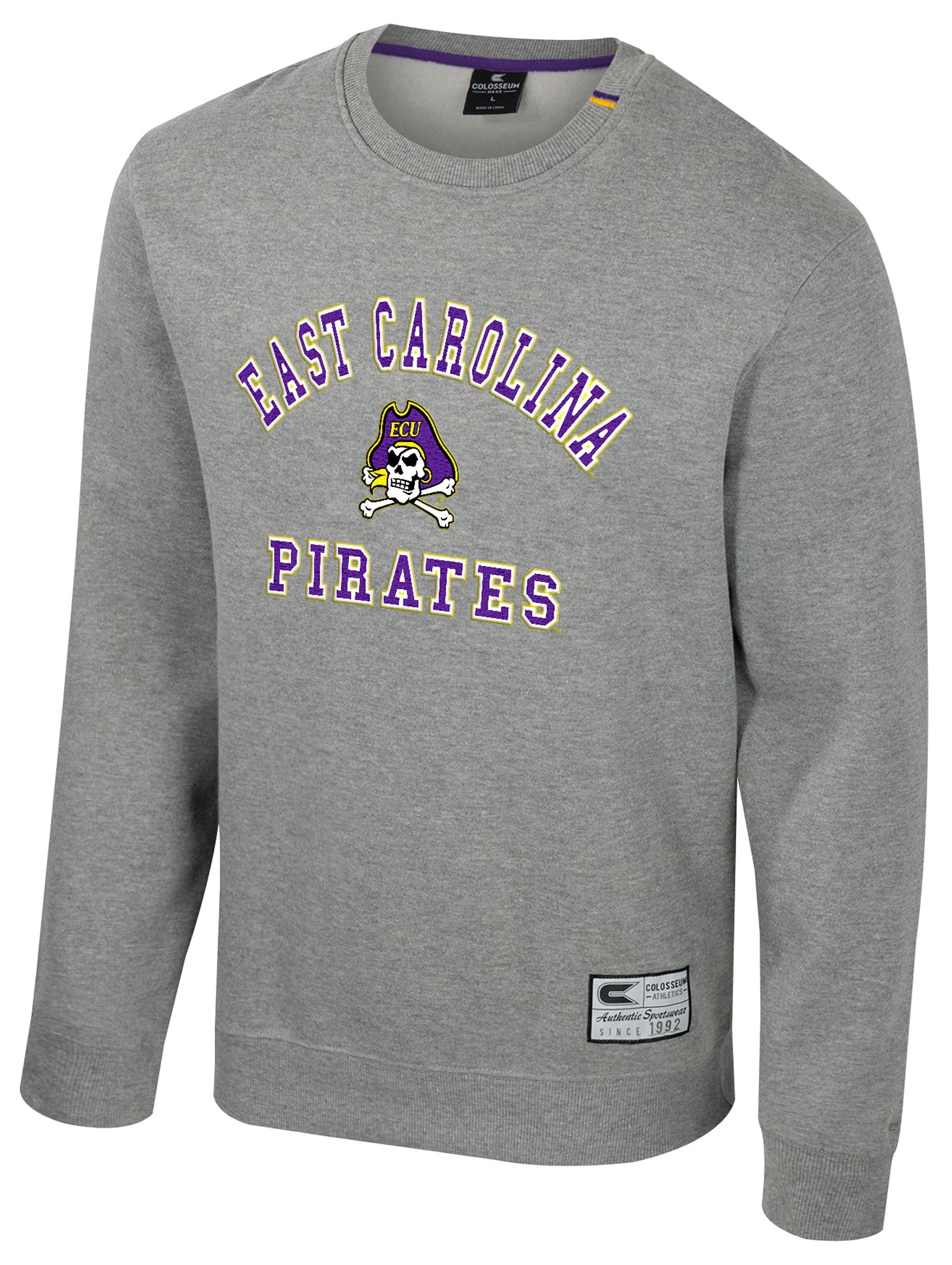 Colosseum Men's East Carolina Pirates Heather Grey Zion Fleece Crew Sweatshirt