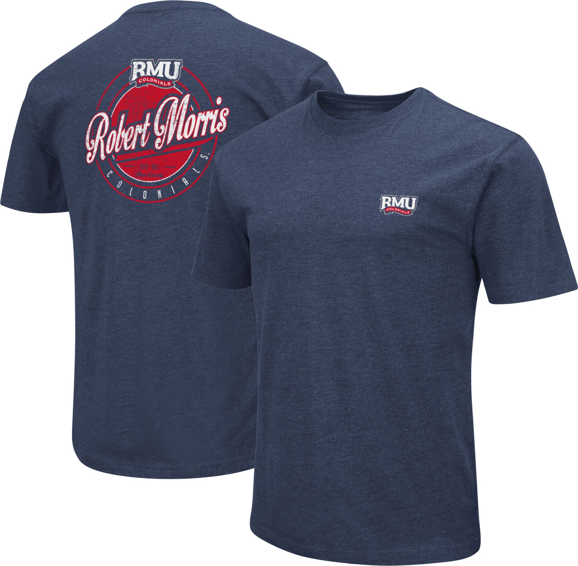 Colosseum Men's Robert Morris Colonials Navy Back Hit T-Shirt