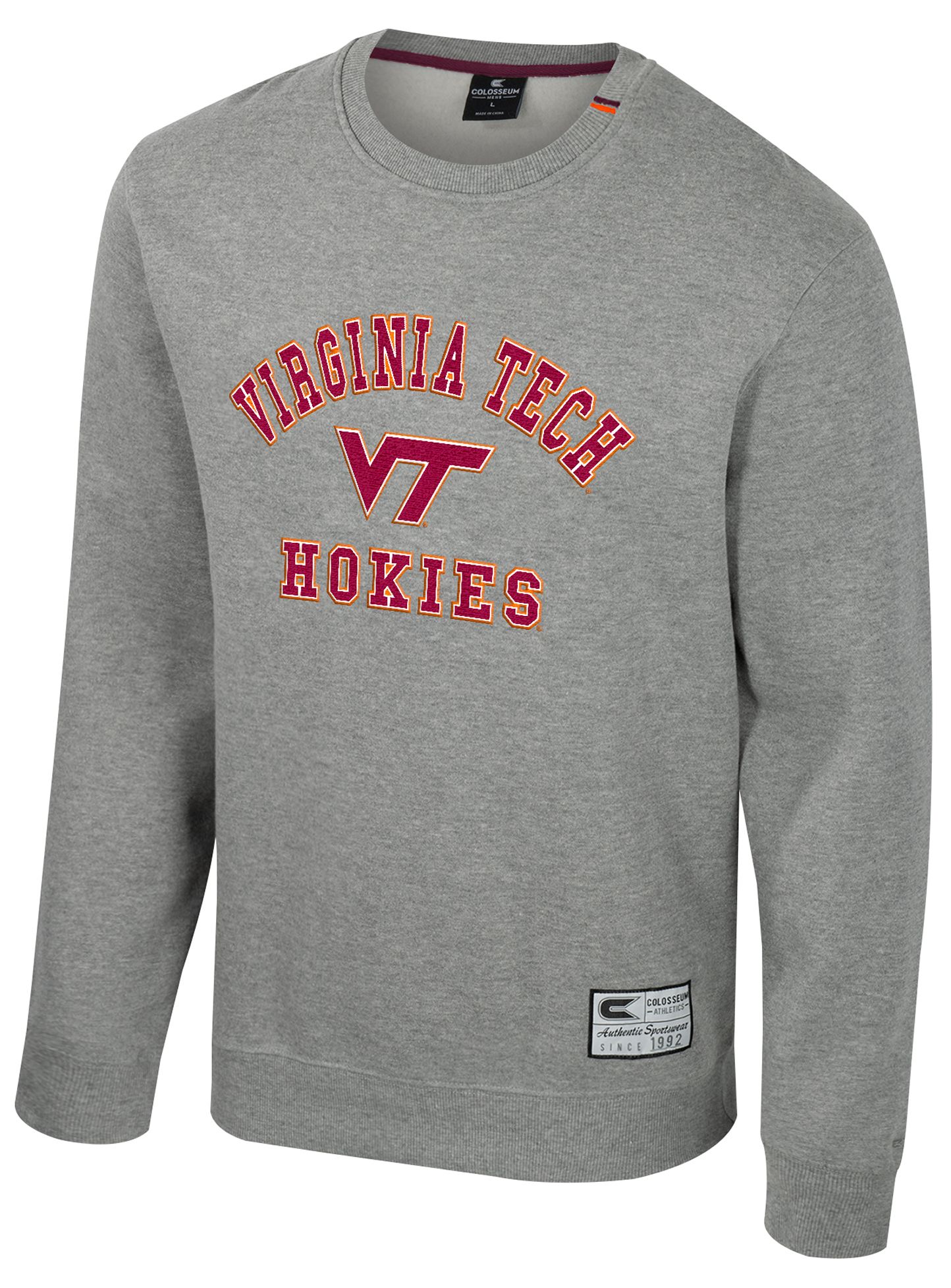 Colosseum Men's Virginia Tech Hokies Heather Grey Zion Fleece Crew Sweatshirt