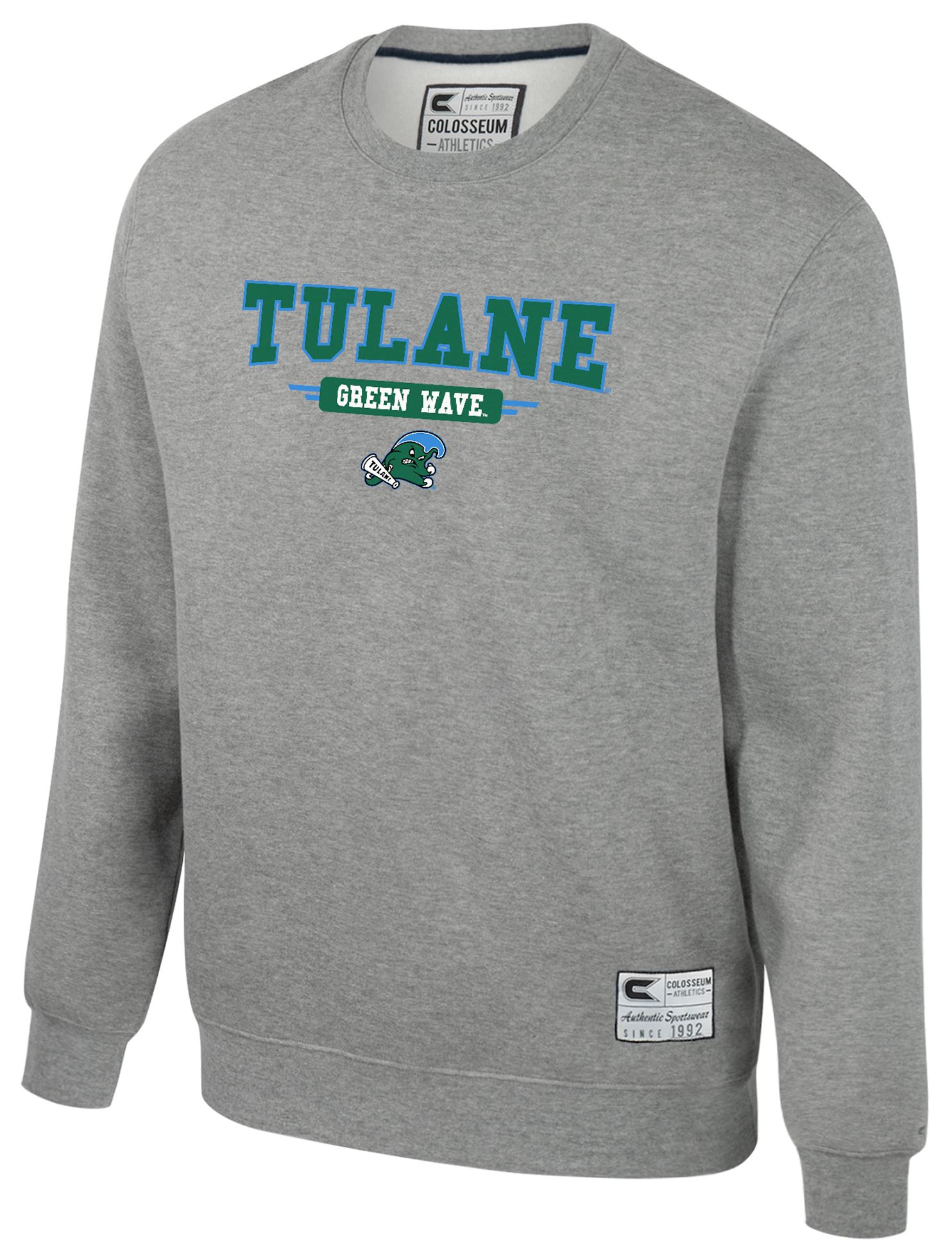 Colosseum Youth Tulane Green Wave Heather Grey Crewneck Fleece Sweatshirt