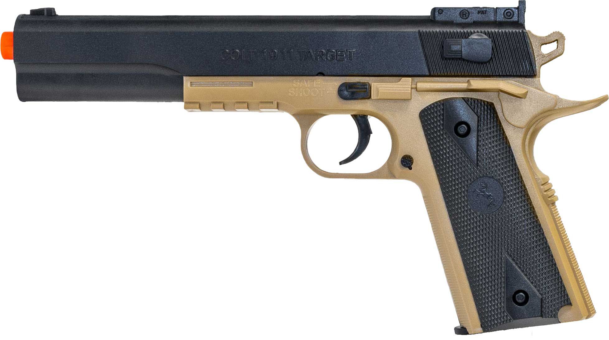This Colt® 1911 Airsoft Pistol Kit will have you outside shooting targets for hours. By packaging the pistol, a compact hip holster, and protective eyeglasses, this kit offers an excellent value. The Colt® 1911 is equipped with a 13-round magazine and a lower tactical accessory rail to mount sights or optics. Firing BBs at 260 feet per second, this pistol is sure to bring out the sharpshooter in you.
