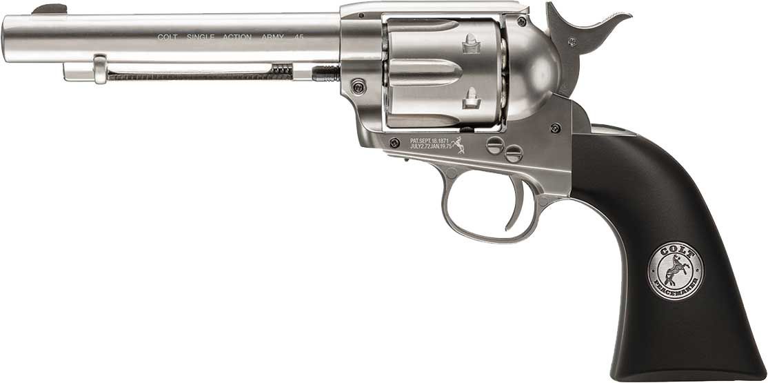 Made to be an authentic replica of the Colt® Peacemaker, this single action air pistol is a high end Pellet gun for target shooting and plinking. Boasting a realistic revolver action and all metal frame, the Peacemaker holds 6 PELLETs at a time and is powered by a C02 compartment in the grip. Designed for Pellets, the Colt® Peacemaker has an unbelievably realistic design and feel as the original sidearm that helped to tame the Old West.