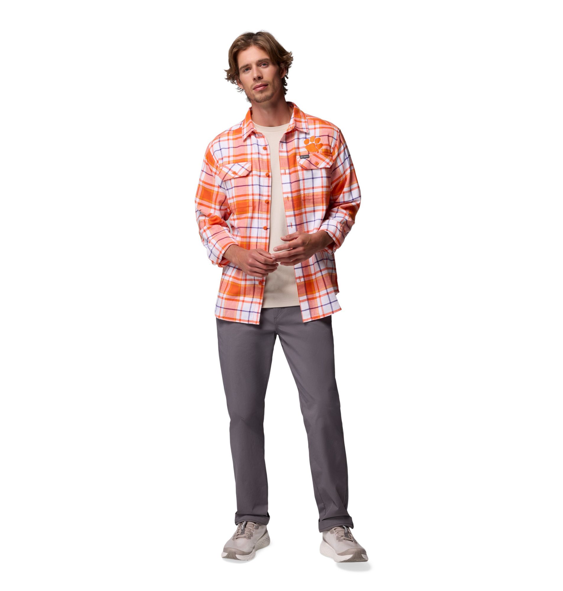 Columbia Men's Clemson Tigers Orange Flare Gun Flannel Long Sleeve Shirt