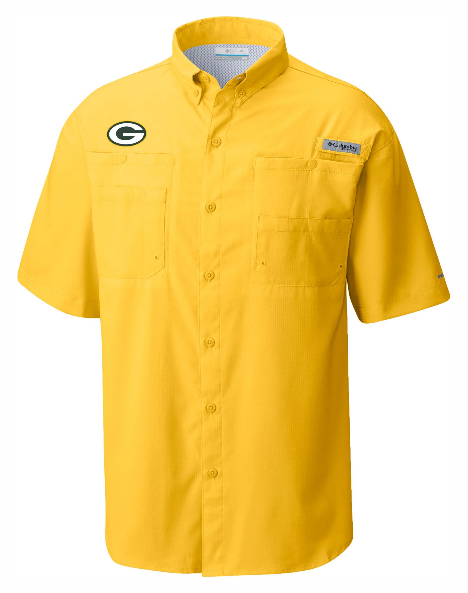 Columbia Men's Green Bay Packers Yellow Low Drag Button Down Shirt