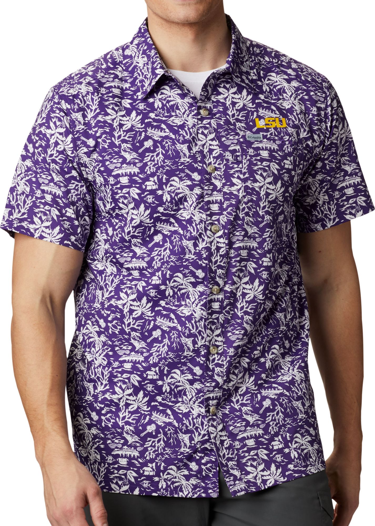 Columbia Men's LSU Tigers Purple Super Slack Tide Button-Down Shirt