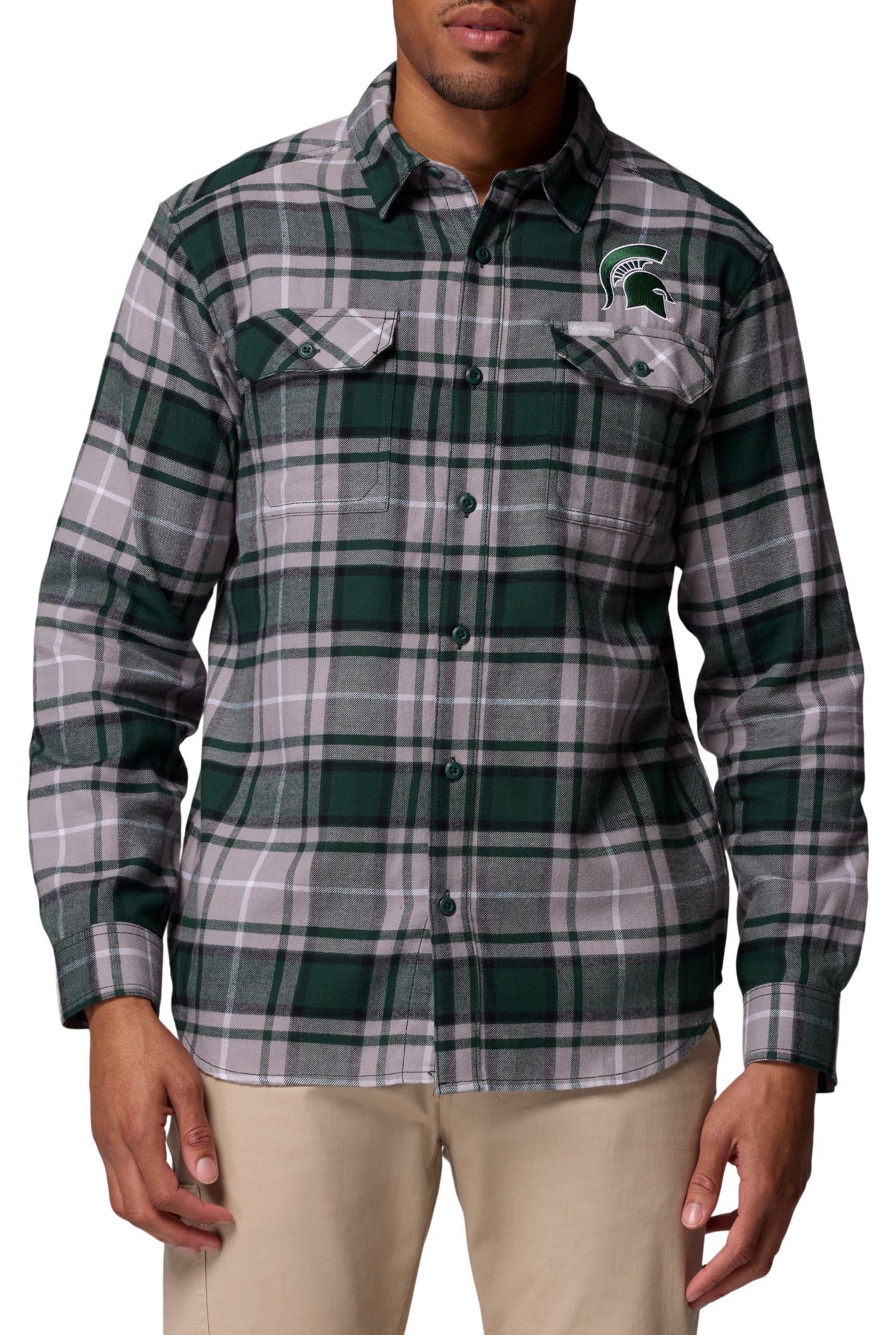 Columbia Men's Michigan State Spartans Green Flare Gun Flannel Long Sleeve Shirt