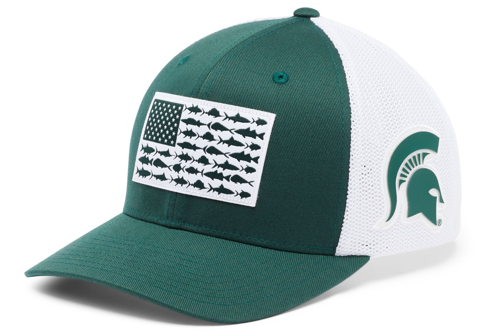 Columbia Men's Michigan State Spartans Green PFG Fish Flag Mesh Fitted Hat