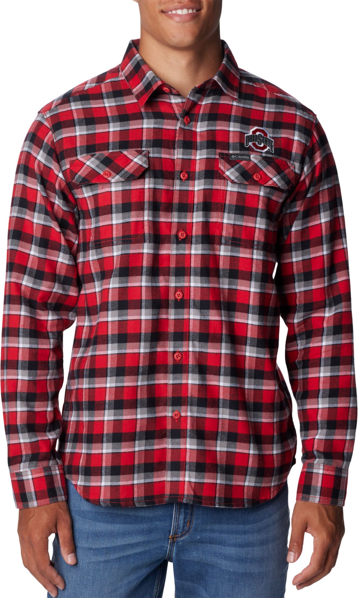Columbia Men's Ohio State Buckeyes Scarlet Plaid Flare Gun Flannel Button Down Long Sleeve Shirt