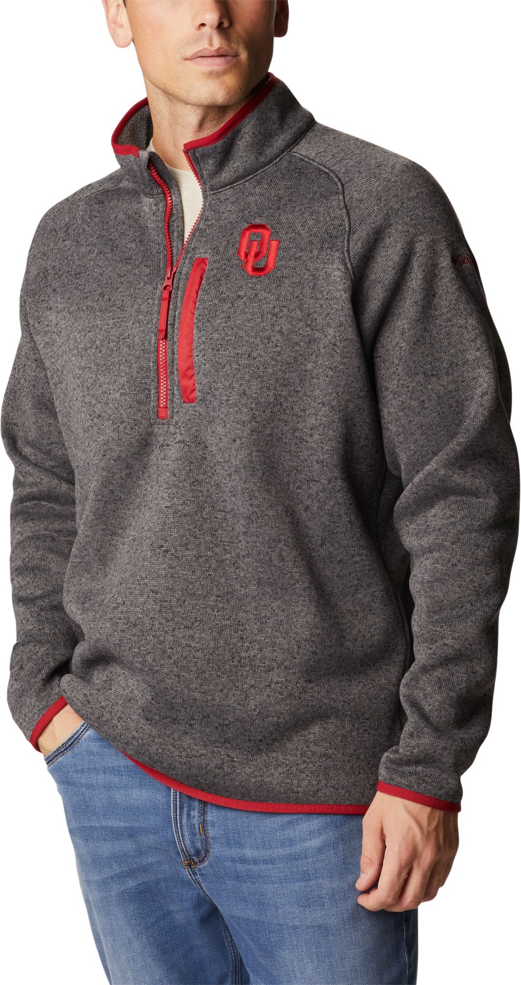 Columbia Men's Oklahoma Sooners Grey Canyon Point Half-Zip Pullover Fleece Jacket