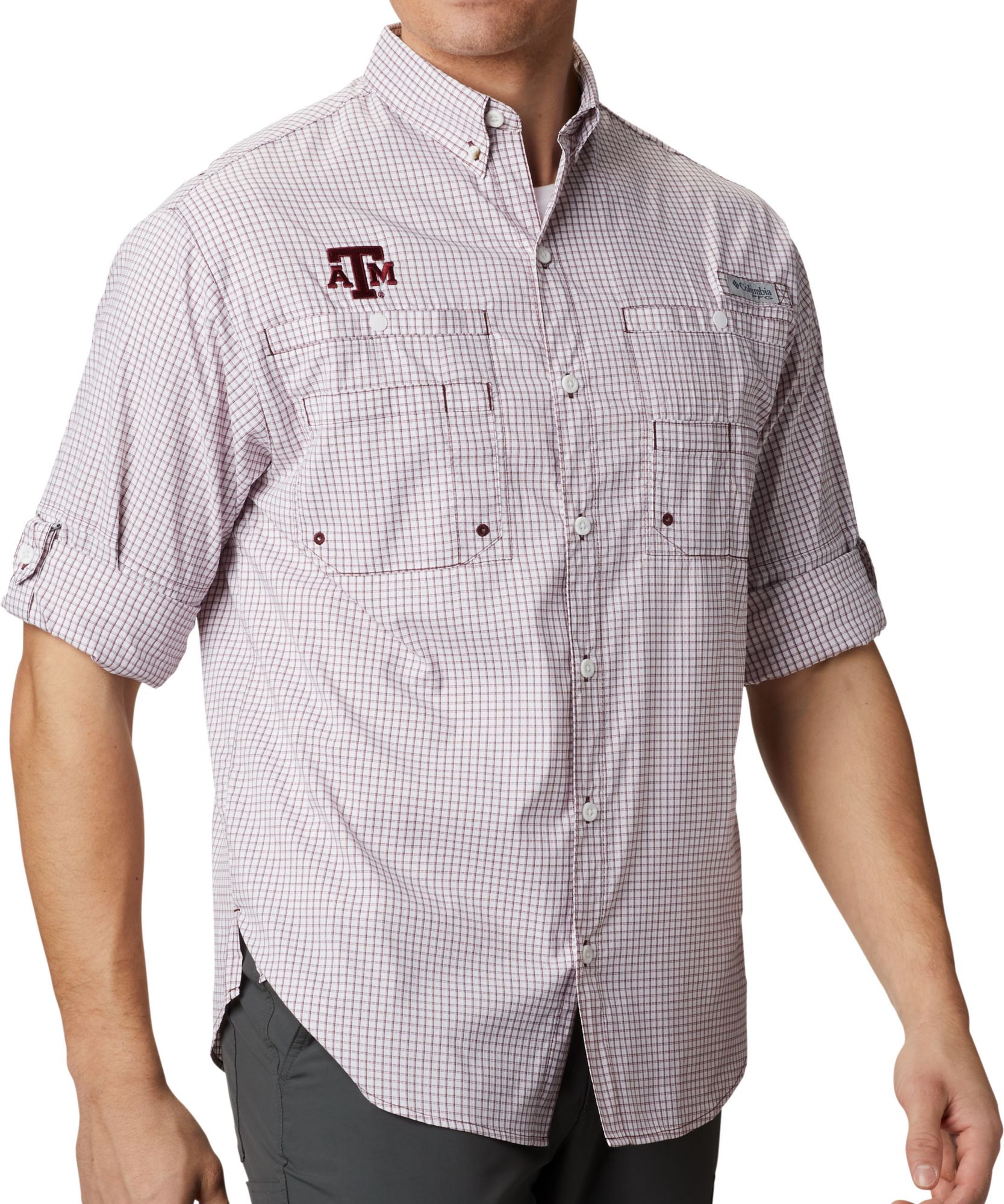 Columbia Men's Texas A&M Aggies Maroon Gingham Long Sleeve Tamiami Shirt