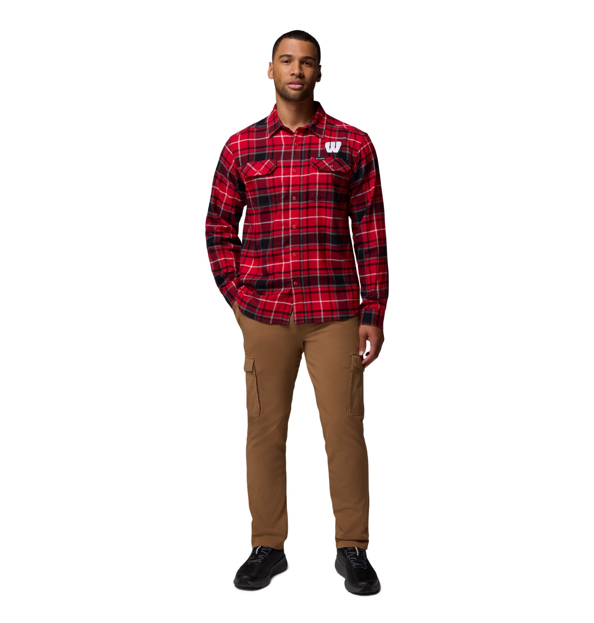 Columbia Men's Wisconsin Badgers Red Flare Gun Flannel Long Sleeve Shirt