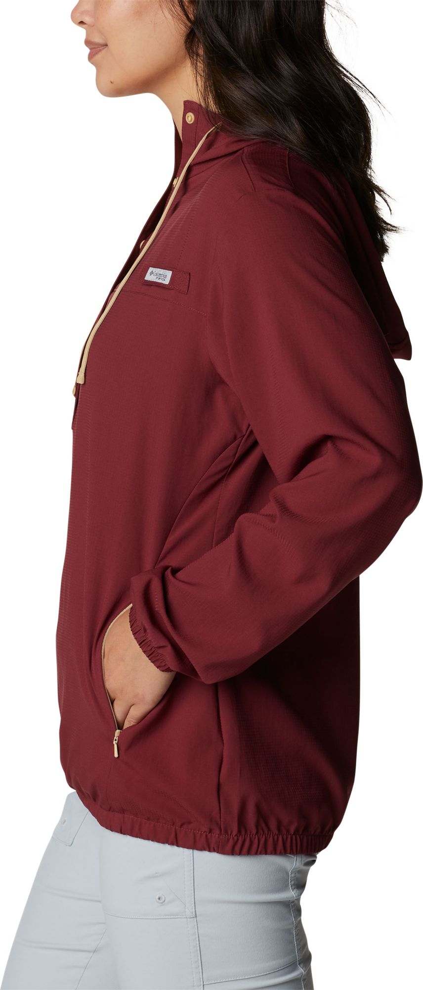 This is a nice light weight jacket. Has zip pockets and a hood. Color is nice and will match other FSU gear.
