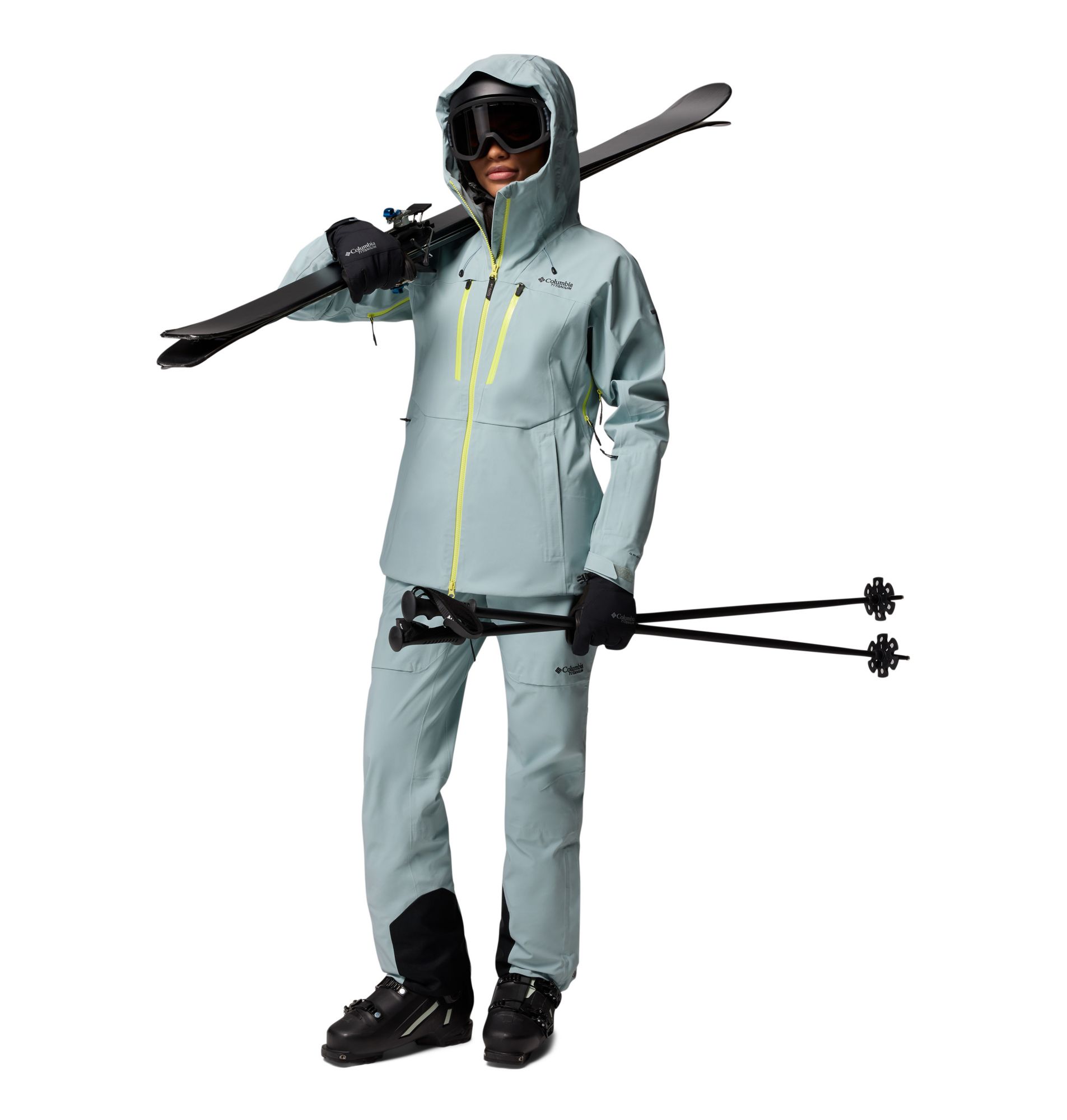 Built for all-day performance and protection, this premium three-layer ski shell offers waterproof breathability and a range of mountain-ready features including a helmet-compatible hood, zippered underarm vents, and an adjustable powder skirt.