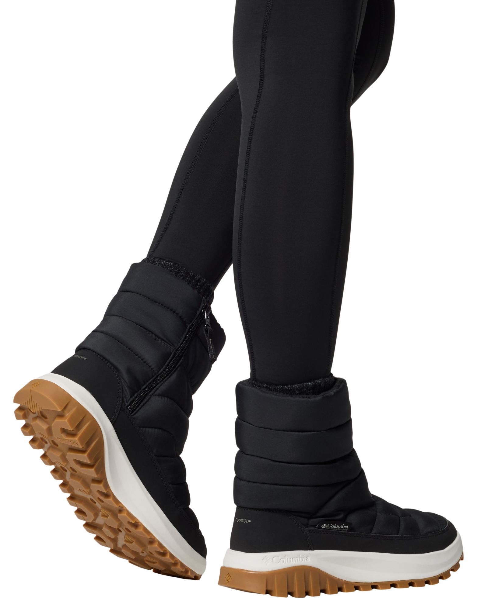 Returned this boot. Disappointed in our last two purchases of winter boots from Columbia. The first (a different pair than this one but similar in looks) we bought for our child, and after some wear, she was always waking on the side of the boots, as if they'd buckled under her. At the time, I thought it was something she'd caused. However, I just bought my own Columbia winter boots, the Women's Snowtrot Mid Boot, for a winter ski trip and thankfully thought to walk around my house in them as a trial before use. First, I bought 1/2 size big to ensure winter socks/liners would fit inside for warmth, but I could not fit these on right with thick socks at all. There was maybe too much insulation on the upper boot so you could not get a thick sock into them properly. The biggest issue was that almost immediately, the shoe began to buckle where the puffy upper meets the sole, so that I felt like I was walking on the side of the boot. Which made me realize that we probably had our daughter walking all winter in ill-fitting boots. Overall, I returned them. I need a winter boot that is durable for outdoor winter and winter sports use, not a fashion boot. Additionally, the outer sole did not appear to have good traction.