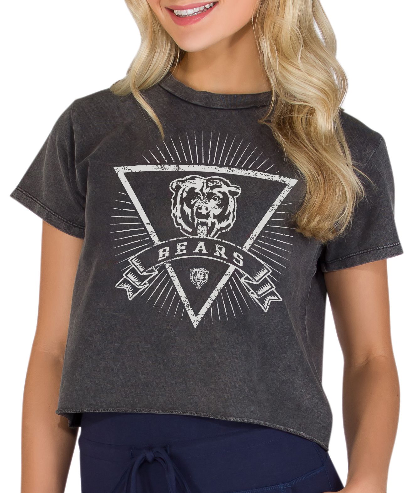 Concepts Sport Women's Chicago Bears Charcoal Acid Wash Cropped T-Shirt