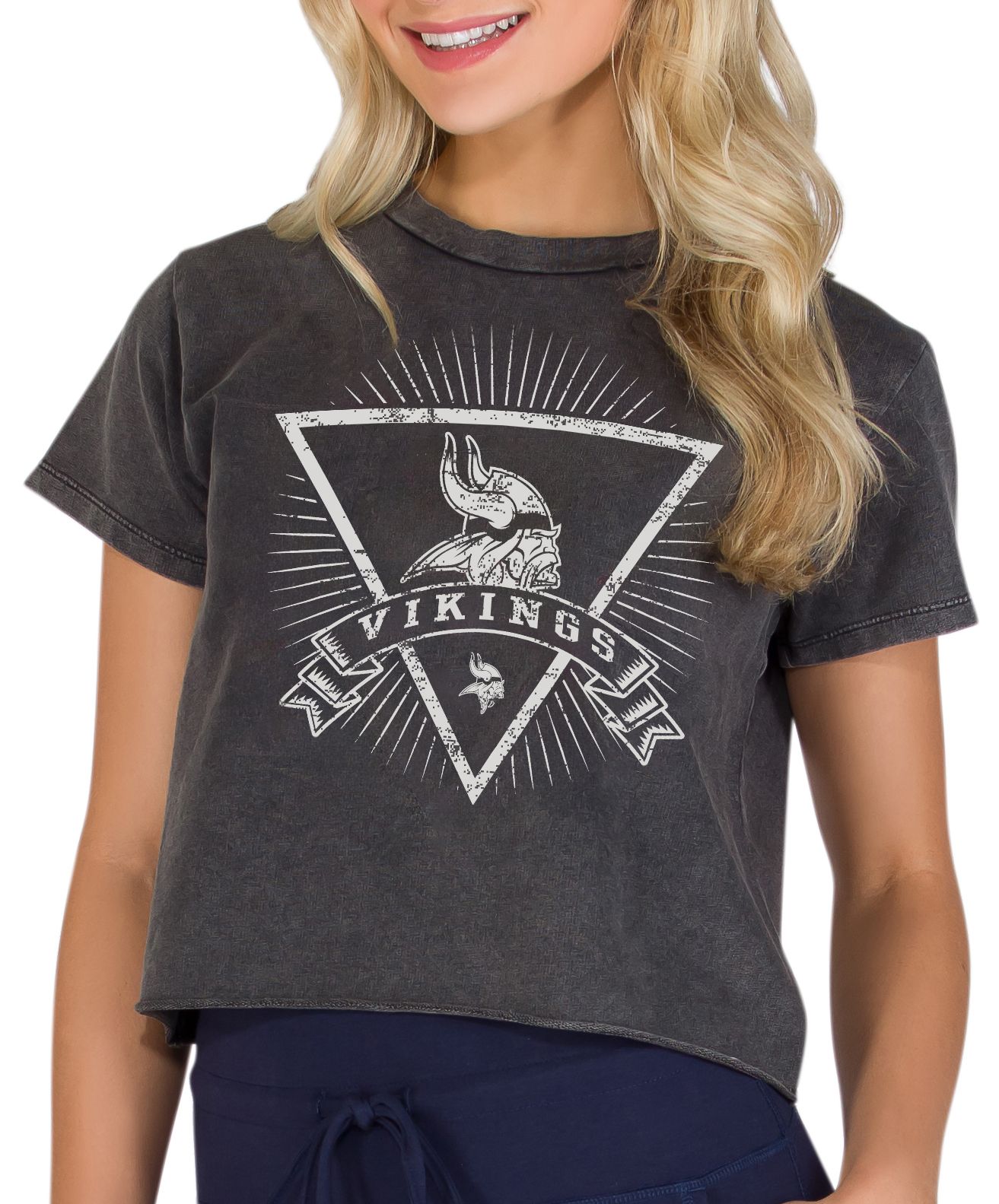 Bought this t-shirt to wear to the Vikings Training camp. Its very cute! The Logo is not as brite in person as it is on the sales page.