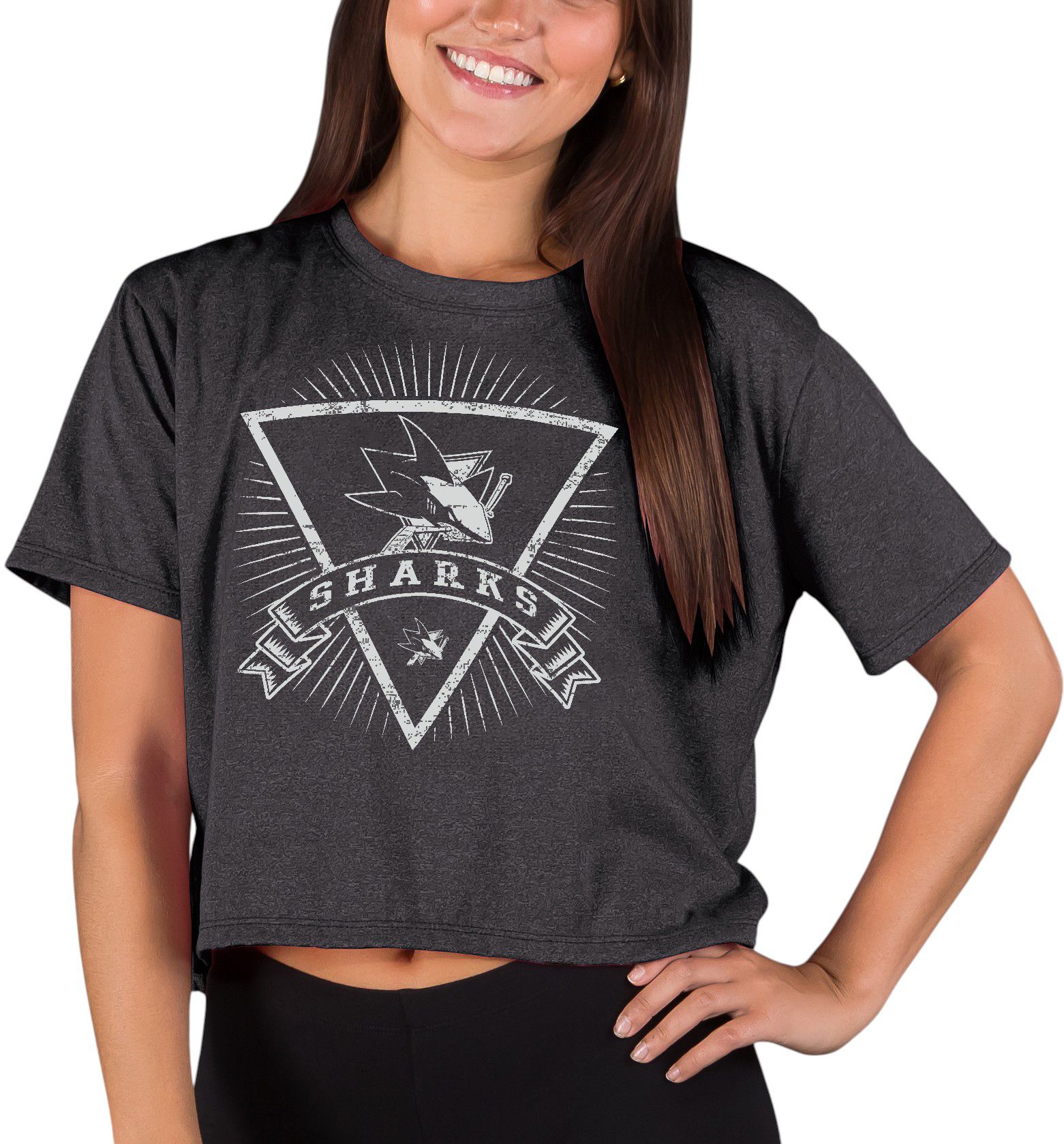 Concepts Sport Women's San Jose Sharks Charcoal Quest Triangle Short Sleeve T-Shirt