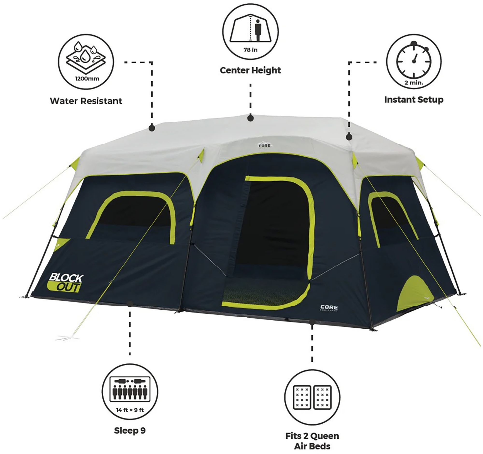 INSTANT SETUP: The tent body with pre-attached poles that lock into place creates a setup time as short as 2 minutes