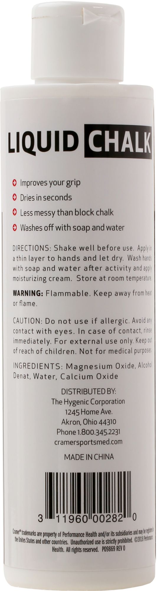 Improve your grip at the gym without handling messy blocks of chalk by using Cramer® Liquid Gym Chalk. This liquid formula is designed to quickly dry on your hands before you start your workout. Whether you’re rock climbing, strength training, or jumping on the parallel bars, trust Cramer® Liquid Gym Chalk to improve your grip.