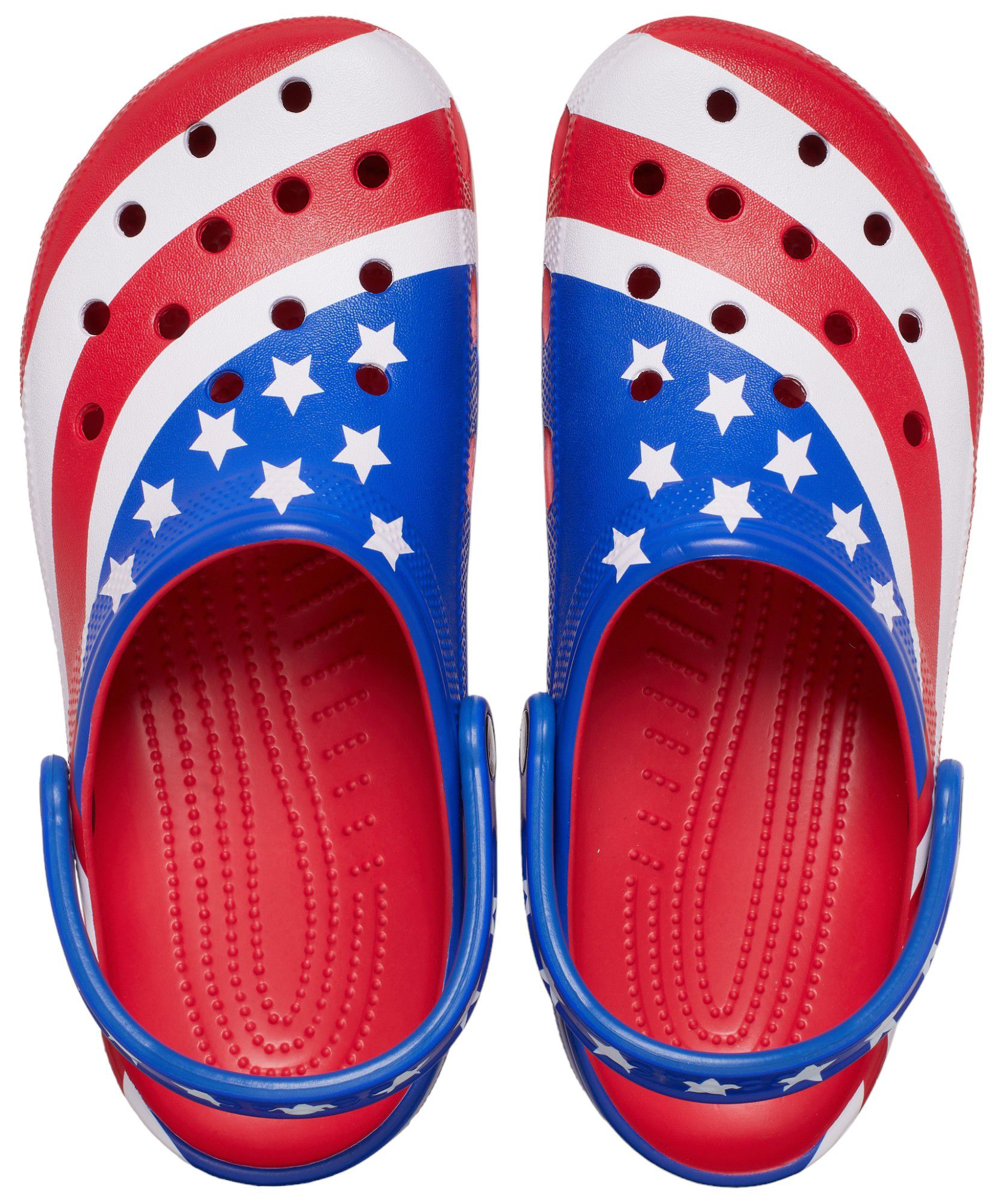 Celebrate the American spirit wearing the Crocs® Classic clogs with a punch of red, white and blue. These casualwear staples now allow you to rep the USA with a left shoe bearing the stars and the right donning the stripes. As always, their soft yet supportive foam Croslite™ construction makes them perfect to wear around town, at the pool, in the yard, after practice and more.