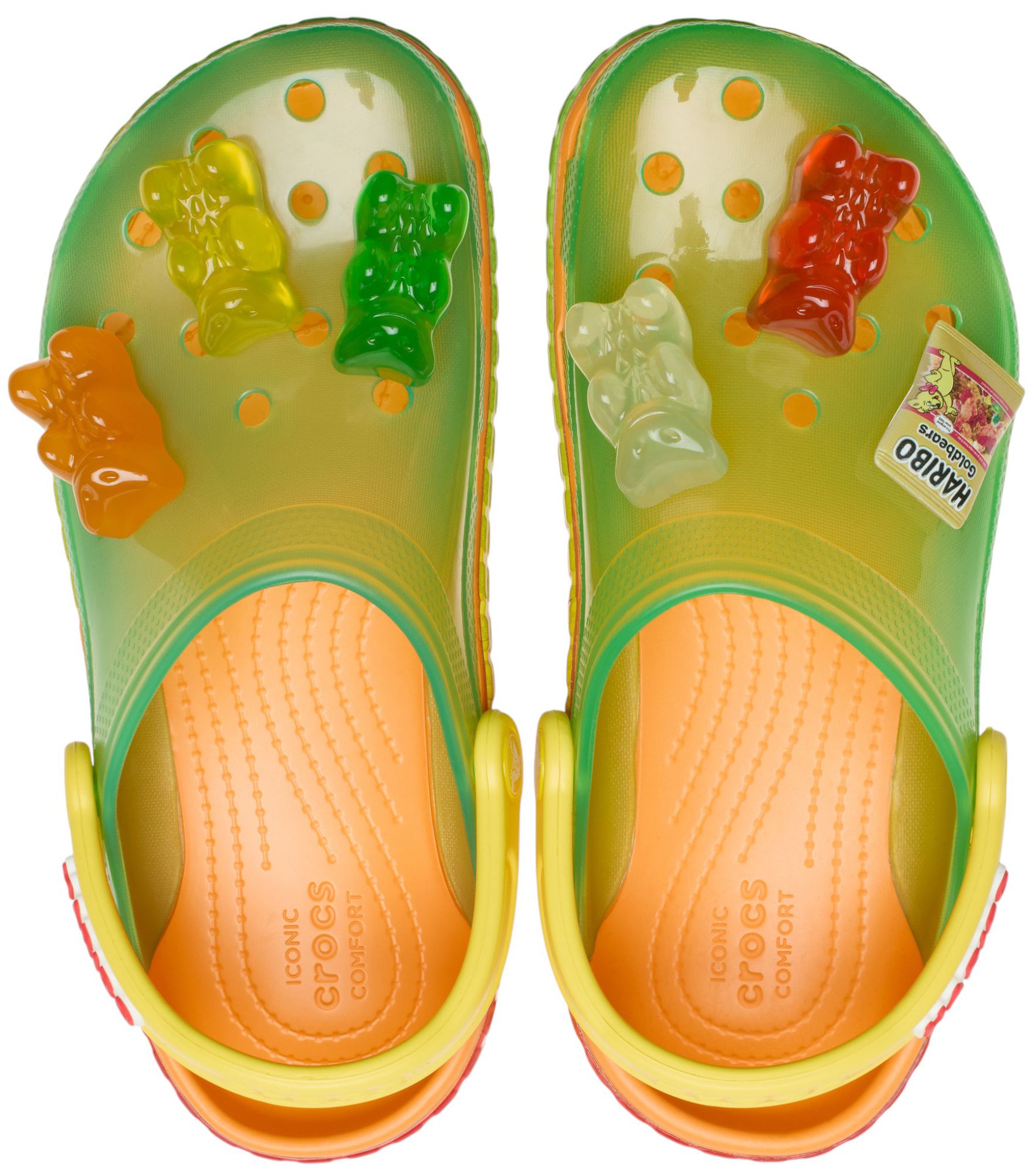 It’s something sweet for your feet. The HARIBO Classic Clog features a translucent upper inspired by everyone’s favorite gummi, with exclusive Jibbitz™ charms that included oversized Goldbears. Treat yourself to a pair!