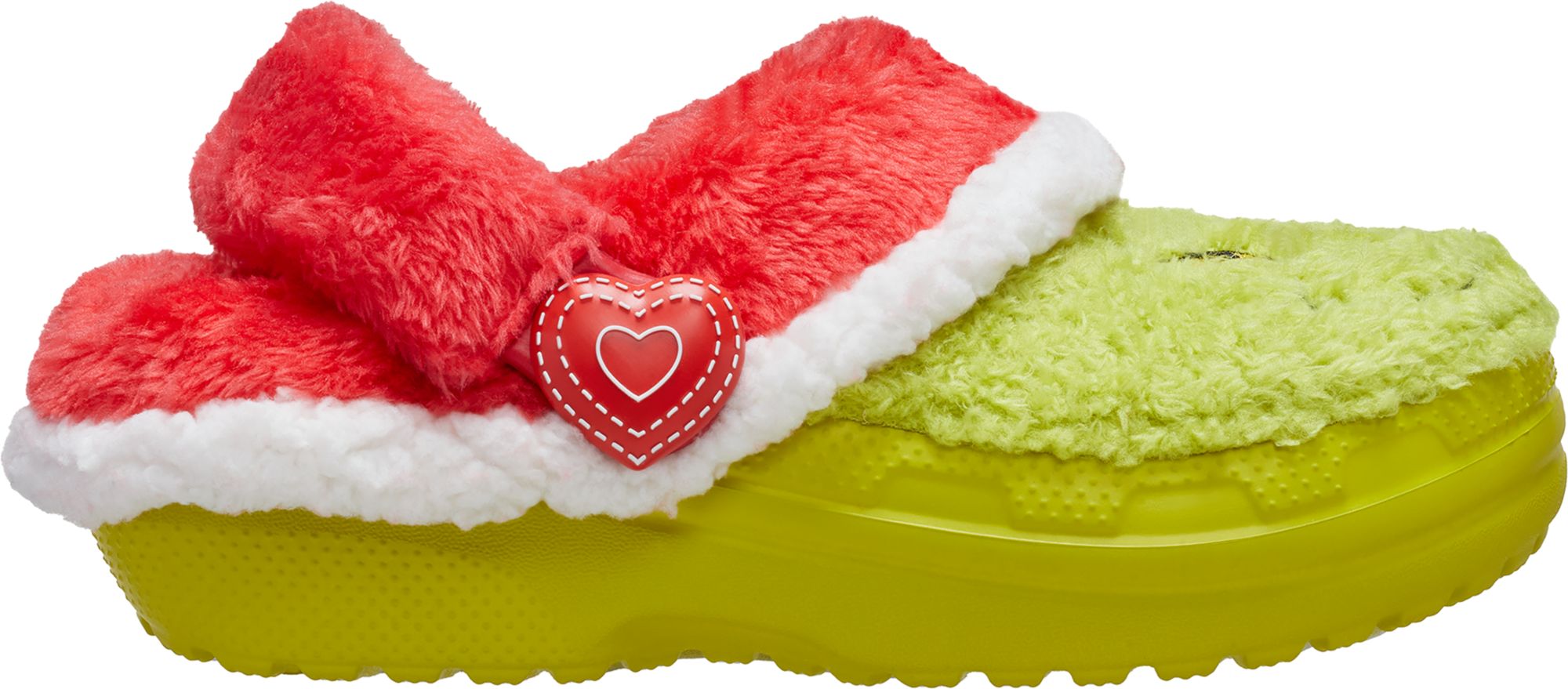 Mr. Grinch may be a mean one, but these Classic Lined Clogs are delightful and comfortable for the holiday season in Who-ville. Each pair is lined inside and out with a soft fuzz that will make your little Who's heart grow at least three sizes. With Grinch's mischievous face is featured on the upper!