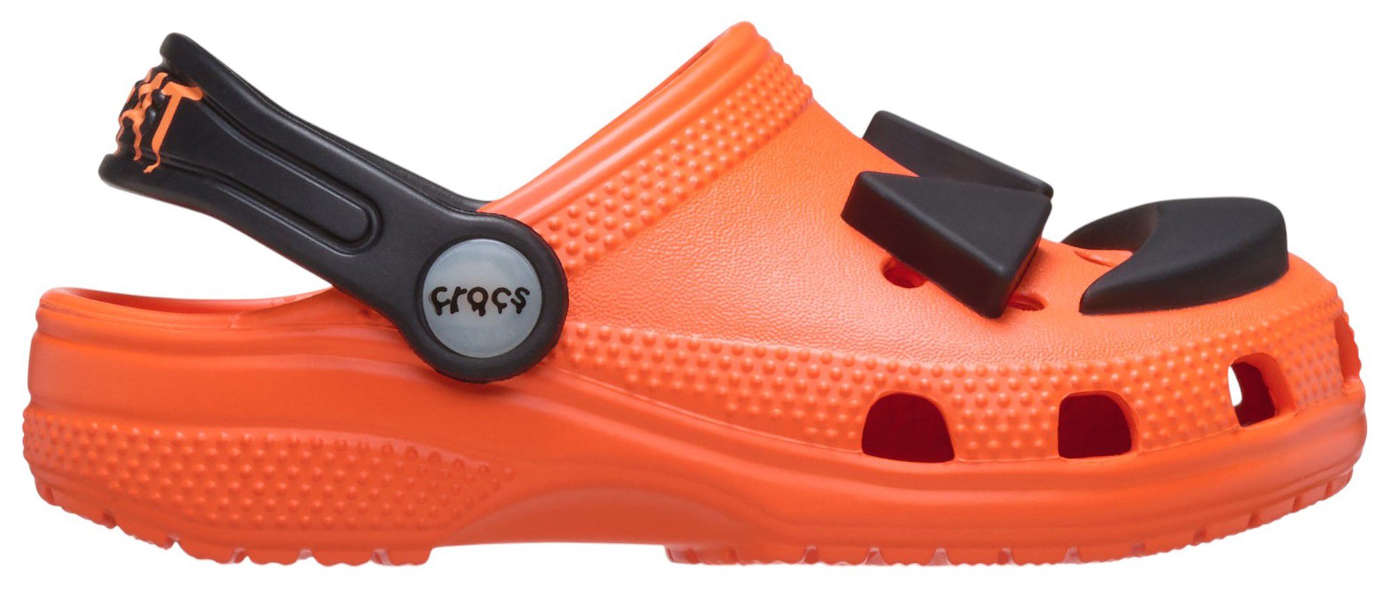 Trick or treat! This version of the iconic clog features a fun Jack O’ Lantern face that lights up with every step. Plus, ‘Trick’ is printed on the left heel strap and ‘Treat’ is printed on the right heel strap. Kids will enjoy the fun Halloween theme, and Croslite™ foam construction keeps the clogs comfortable and easy to wear. Crocs offers a variety of Classic Clogs for Kids and Toddlers that feature inspired designs to help kids express themselves and engage new friends, resulting in more fun.