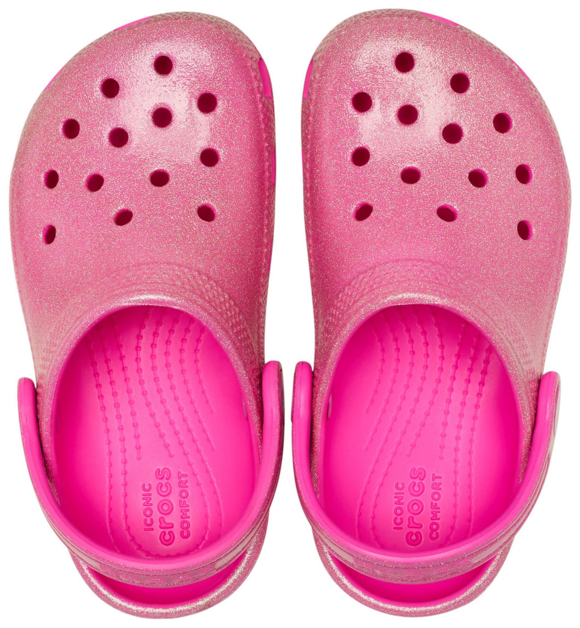 Little ones will love the new iridescent glitter treatment and iconic Crocs comfort in the Toddler Classic Iridescent Glitter Clog. The sparkly glitter changes color when you look at it from different angles, making these extra fun, and Croslite™ foam construction keeps them light and easy to wear. Also available in adult sizes for you, as well as kids’ sizes, so you can get matching pairs for a fun full family moment. Grounded in comfort, spiked with personality. Sparkle on!