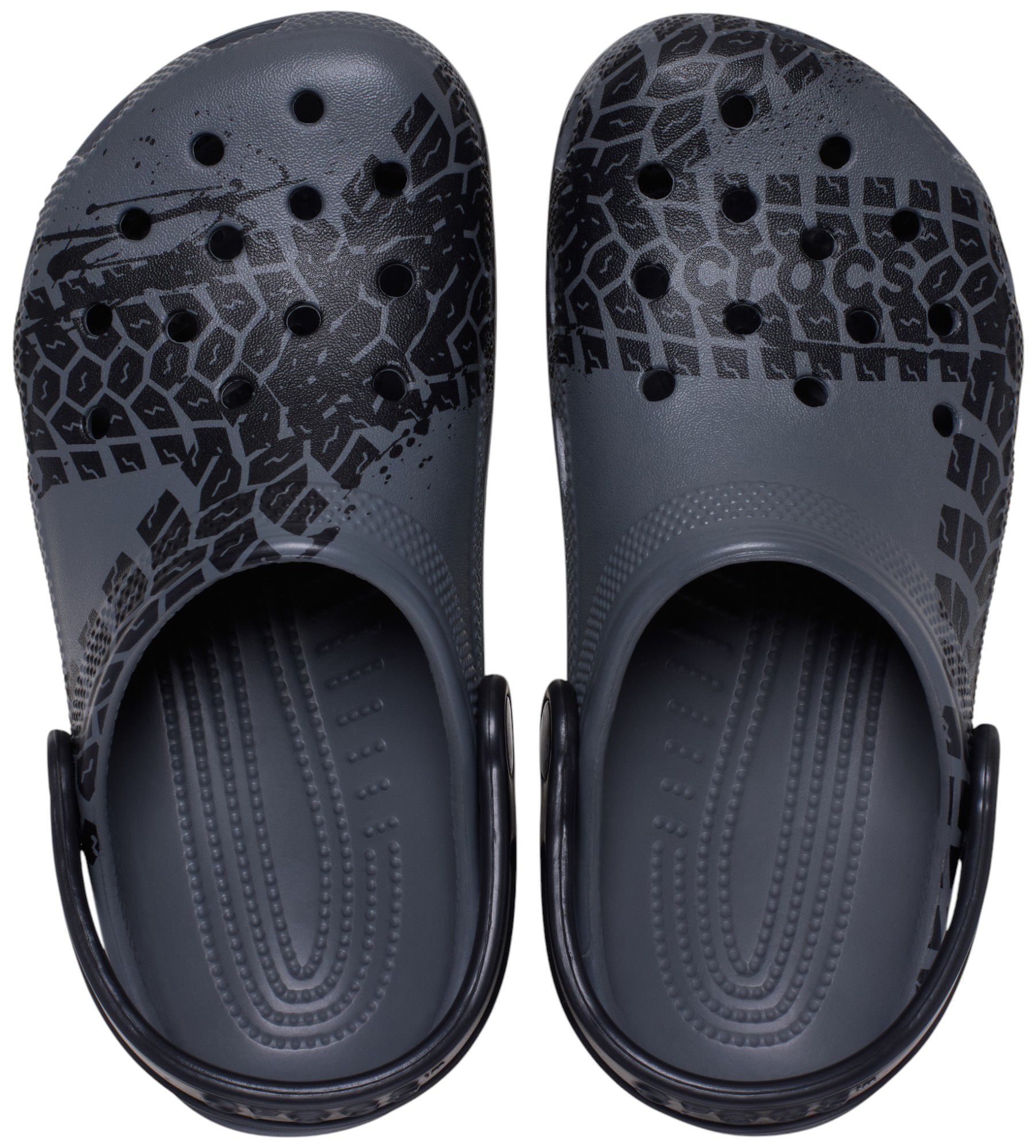 A cool tire print graphic provides extra style to this version of the iconic clog. The unique graphic helps little ones have fun while racing about their day, and Croslite™ foam construction keeps them light and easy to wear. Grounded in comfort, spiked with personality.
